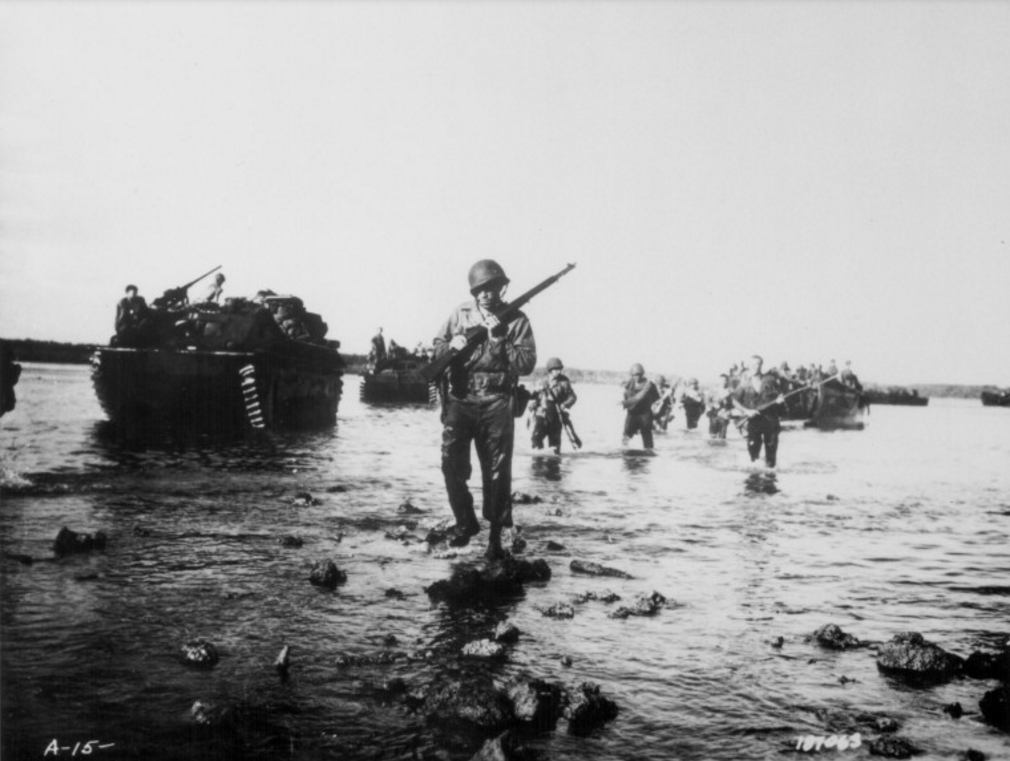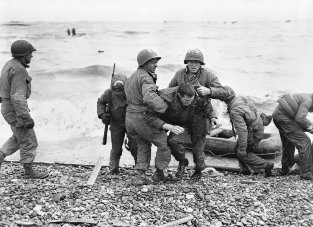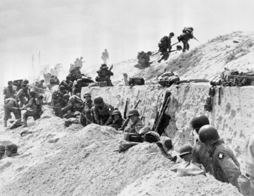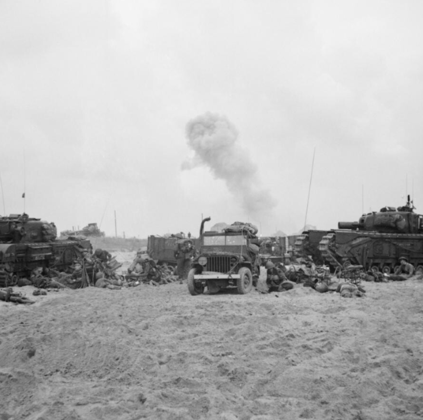 US soldiers advance towards land from the beaches at Normandy on D-Day, June 6, 1944.Reinforcements disembarking from a landing barge at Normandy during the Allied Invasion of France on D-Day.Allied soldiers, tanks and ships take part in the D-Day landings at Arromanches beach in Normandy, Northern France on June 6, 1944.US Marines landing at Normandy in amphibious landing craft on D-Day, June 6, 1944.General Dwight D. Eisenhower (1890-1969) smiles while speaking with the men of the US 101st Airborne Division, ‘The Screaming Eagles’, as they prepare for the D-Day invasion, England, World War II, June 6, 1944.Landing Craft Infantry on the way to Normandy during World War Two, France, June 6, 1944.US troops landing in Northern France on D-Day, June 6, 1944.Troops from the 48th Royal Marines at Saint-Aubin-sur-mer on Juno Beach, Normandy, France, during the D-Day landings, June 6, 1944.US troops of the First Army on Landing Craft Infantry during the allied assault on the beaches of Normandy, World War Two, France, June 6, 1944.American troops, part of the Allied Expeditionary Force, wading ashore beside their amphibious tanks during the initial landings in France on June 6, 1944.Troops of the Canadian 3rd Division, leaving their ship with their bicycles, at Juno beach along the coast of Normandy, France on D-Day, June 6, 1944.A ‘2nd Invasion Extra’ edition of the Worcester Telegram newspaper, published in Worcester, Massachusetts, reporting the Allied invasion of Normandy on D-Day, June 6, 1944.A line of American Paratroopers with full equipment filing along to their Douglas C 47 transports ready for the Invasion, June 6, 1944.American troops with their equipment boarding a landing craft ready for embarkation to France.Correspondents at the Ministry of Information, London, busy typing their first invasion stories on June 6, 1944.A US soldier holds a group of German troops and laborers at gunpoint in a ditch during World War II, Omaha Beach, Normandy, France, on June 6, 1944.A New York haberdasher fixing up a sign explaining that his shop will be closed while staff pray for Allied victory in the invasion of Normandy on D-Day, June, 6 1944.Canadian snipers get some last minute training in England, May 9, 1944 as all await D-day.German prisoners of war are detained behind barbed wire by American soldiers on Utah Beach.6 June 1944 during World War IIRobert CapaD-Day, the invasion of France, June 6, 1944. American craft of all styles at Omaha Beach, Normandy, during the first stages of the Allied invasion. Click to fade to a view of Omaha Beach on May 7, 2014, near Colleville sur Mer, France.The body of a dead German soldier lies in the main square of Place Du Marche after the town was taken by U.S. troops who landed at nearby Omaha Beach in Trevieres, France, June 15, 1944.Commandos of No. 4 Commando, 1st Special Service Brigade, aboard a LCI(S) landing craft on their approach to Queen Red beach, Sword area, 6 June 1944.Commandos of No. 4 Commando, 1st Special Service Brigade, coming ashore from LCI(S) landing craft on Queen Red beach, Sword area, 6 June 1944.Follow-up troops wade ashore from landing craft on Queen sector of Sword Beach, 7 June 1944.Beach Group troops wade ashore from landing craft on Queen beach, Sword area, on the evening of 6 June 1944.British troops from 3rd Division, some with bicycles, move inland from Sword Beach, Normandy, 6 June 1944.An M10 Wolverine 3-inch self-propelled gun of 20th Anti-Tank Regiment provides cover for infantry of 3rd Division as they advance inland from Queen beach, Sword area, 6 June 1944.A battery of M7 Priest 105mm self-propelled guns from 33rd Field Regiment, Royal Artillery, near Hermanville-sur-Mer, 6 June 1944.A Royal Artillery command post, probably from a 105mm SP M7 Priest Field Regiment, near Hermanville-sur-Mer, 6 June 1944. The Sherman OP (observation post) tank in the background has a small ‘GD’ tactical marking on the side of its hull, indicating the GPO (Gun Position Officer) of B Troop, 2nd Battery. Motorcycle despatch riders and a Universal Carrier can also be seen. Some troops are bedding down in the foreground.Churchill AVREs of 79th Assault Squadron, 5th Assault Regiment, Royal Engineers, and other vehicles on Queen Red beach, Sword Area, 6 June 1944.Universal Carriers of 2nd Middlesex Regiment (3rd Division’s MG battalion) pass a Churchill AVRE of 77th Assault Squadron, 5th Assault Regiment, in La Brèche d’Hermanville, 6 June 1944.A jeep and other vehicles and troops passing through La Breche as they move inland from Sword Beach, Normandy, 6 June 1944.Troops of 3rd Division pause in La Brèche d’Hermanville during their move inland, 6 June 1944. The infantry on the right have been identified as 2nd Royal Ulster Rifles from 9th Brigade. The half-track is from 246 Field Company Royal Engineers.Vehicles and infantry on bicycles of British 3rd Division in La Brèche d’Hermanville, as they move inland from Sword Beach, 6 June 1944. A Churchill AVRE can be seen on the right.A Universal Carrier fitted with deep wading screens and motorcyclists of British 3rd Division in La Brèche d’Hermanville, 6 June 1944.Two wounded British soldiers from 3rd Division making their way back through La Brèche d’Hermanville, 6 June 1944.A Universal Carrier with wading screens attached and half-tracks of 3rd Division passing through Hermanville-sur-Mer, 6 June 1944.British 3rd Division troops passing a First World War memorial in Hermanville-sur-Mer, 6 June 1944.A screen of 6-pdr anti-tank guns in position by the side of the Rue de la Croix Rose in Hermanville-sur-Mer, 6 June 1944. The Route de Caen can be seen going off to the rightCommandos of 48 (RM) Commando coming ashore from landing craft at St Aubin-sur-Mer on Juno Beach, 6 June 1944.Consolidated B-24H Liberators of 486th Bombardment Group, US Eighth Air Force, flying over part of the Allied invasion fleet gathered off the Normandy coast, 6 June 1944. They were part of a