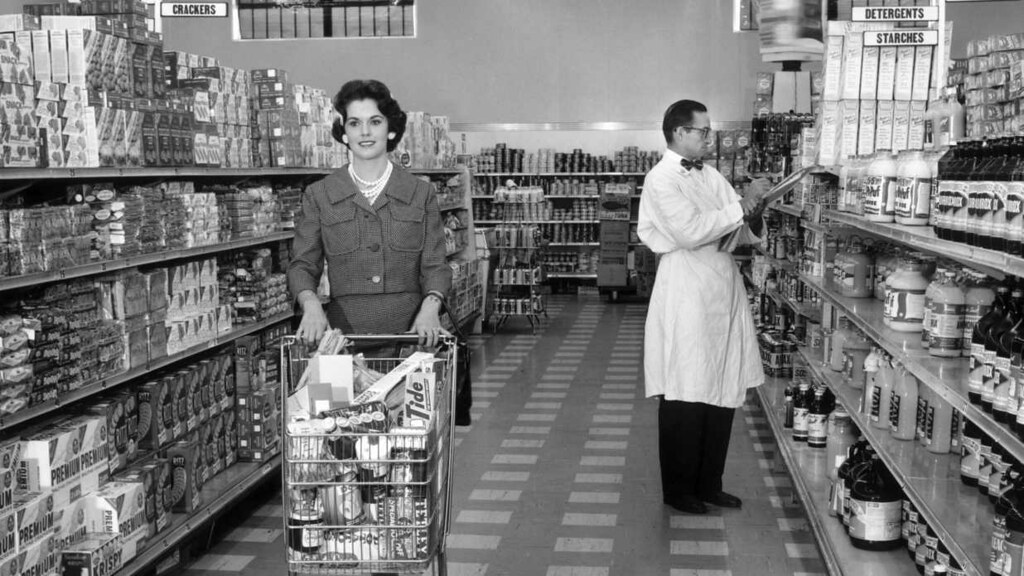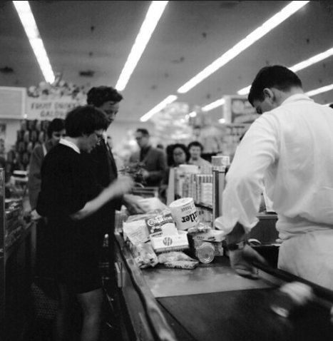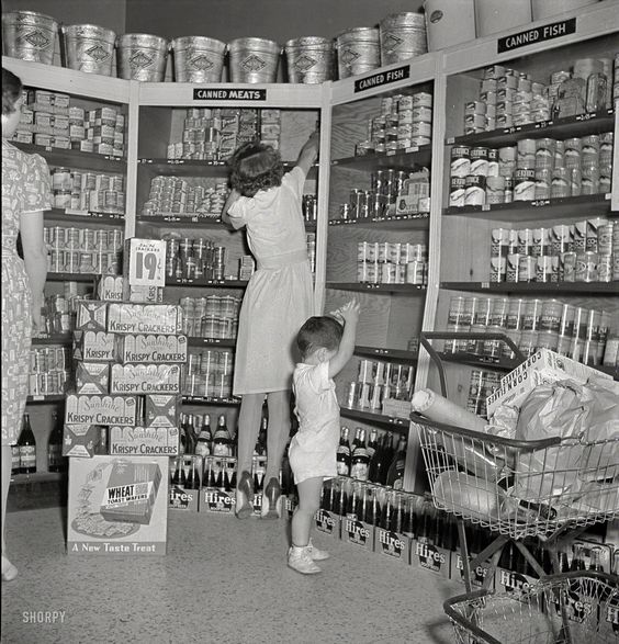 Jitney Jungle Checkout Clerk Billy Barineau In Tallahassee, 19621972, Box-boy in a small rural grocery store in southeast Idaho.1950scirca 1965: A woman smiles as she pushes a shopping cart full of groceries down the aisle of a supermarket. A grocer stands behind her, writing on a clipboard.1950sNew Hampshire, 1958Kroger grocery store, Lexington Kentucky, 19471970s Grocery Shopping 1950s Woman Shopping Frozen Food Section Of Grocery StoreThis is Johnson’s Superette. A few people are shopping and one boy who looks like an employee is in the picture. This was some kind of special event for Johnson’s. The date is 6/1/1951. No names were noted. May 1942. Greenbelt, Maryland. Father and son shopping in the cooperative store.1940s1940sShopping at a Los Alamos supermarket, 1940sSelecting a (TEN CENT!) Angel Food Cake 1957.A supermarket in New York City, March 1953.May 1942. Greenbelt, Maryland. Federal housing project. Shopping in the grocery store.July 1942. West Danville, Vermont. Guy Davenport, 11, and Maynard Clark, 14, reading the air raid instructions posted in Gilbert S. Hastings’ post office and general store.The Grocery Store Of The Late 19th Century, USA