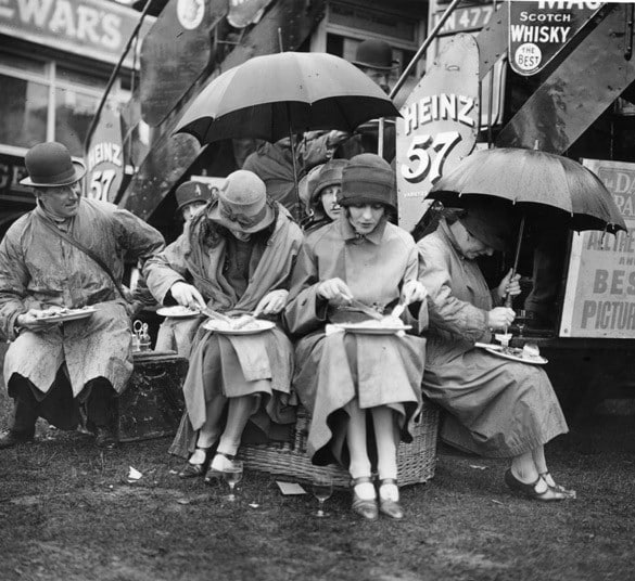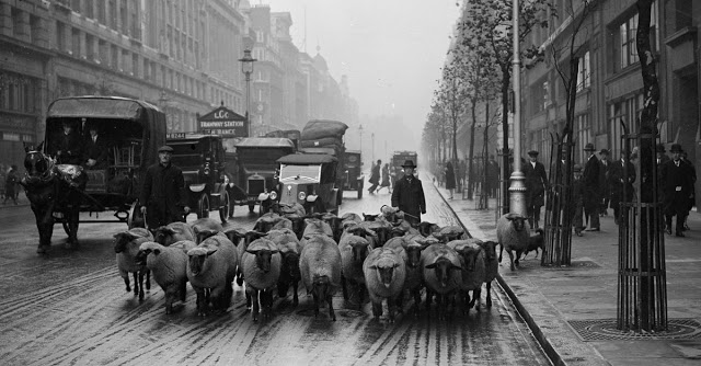 Construction workers taking lunch break on the edges of the building they’re working on, London, 1929.Boys boxing barefoot while their friends look on, London, 1920.Fog encases workers at Ludgate Circus, London, November 1922Throgmorton St, 1920.Thames and Tower Bridge in London, 1920s.Twenties glamour, London, 1925.In 1921, early suffragettes often donned a bathing suit and ate pizza in large groups to annoy men.Customer complaint, 1922.Two women having a laugh on a delivery bike in 1927.London 1925.The lights of Piccadilly Circus, just around the corner, London, 1928.British Museum tube station, 1921.Trinity Almshouses, Mile End Rd, 1920.Wembley, 1923, West Ham fans at the turnstiles.London heatwave, 1920s.An ice cream vendor and his customers on the streets of London, 1920s.The gentleman plays the concertina, with the lady perhaps collecting money, or even singing, London, 1920s.Photographer over Fleet Street, December 1929.Covent Garden market traders preparing for business in the 1920s outside Theatre Royal Drury Lane.Petticoat Lane market, 1920s.London Underground in the 1920s.Buses line up to take racegoers to the Epsom Derby near Morden Underground Station, 1920.In the 1920s and 1930s, sheep were routinely introduced into London parks to keep the grass under control and reduce mowing costs.Tram emerging from the Kingsway Tunnel, 1920.Ludgate Hill, London, 1920.Trinity Almshouses, Mile End Rd, 1920.Clapham South underground Station, 1926.A commuter roller skates to work during the General Strike, 1926.The engineer is attaching the main telephone cable to a new support wire, suspended between Maddox Street and Conduit Street in Mayfair, London, c.1920s.Street traffic on London Bridge, 1927.Seven Sisters Road, 1922.Tower Bridge, 1920s.An underground train being transported on wheels through the streets of London, 1926.A worker inside Big Ben, London, 1920.Bank of England Watchman, London, 1925.King’s Cross Station, 1927.Taylor’s Pie House, 1920s.Regent Street, 1920s.Covent Garden market, 1920.A young visitor and her toy elephant finds that the elephant house at London Zoo is closed for their winter holidays.London Pavillion Theatre and Coventry Street from Piccadilly Circus, 1920sTrafalgar Square from the steps of St Martin’s-in-the-Fields, 1920sTrafalgar Square looking south, 1920sWhitehall from Parliament Square, 1920sChildren beneath Southwark Bridge, 1920sPutting on the glitz – flappers at the bar of Isa Lanchester’s nightclub in London. 1920sIn 1929, just a year after winning the right to vote on the same terms as men, a carload of women arrive at a polling station to celebrate a Conservative Party election victory.Making the best of a rainy day, these ladies tuck in to lunch during a race meeting.Two friends stroll in Hyde Park in the early 20s.Starting her own fashion career, this young girl is named ‘Miss 1926’ at a New Year’s Party.Fleet Street, 1920sHouses of Parliament from County HallJ Lyons Corner House on Strand and Craven Street, 1920sKing William IV Street and Charing Cross Hospital from Strand, 1920sMarket porters in Drury Lane, Covent Garden, 1920sMonument Street near Billingsgate Market, 1920s.Sailing barge at Greenmoor Wharf rubbish depot, Bankside, 1920s.