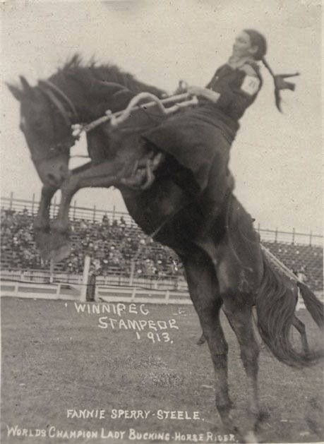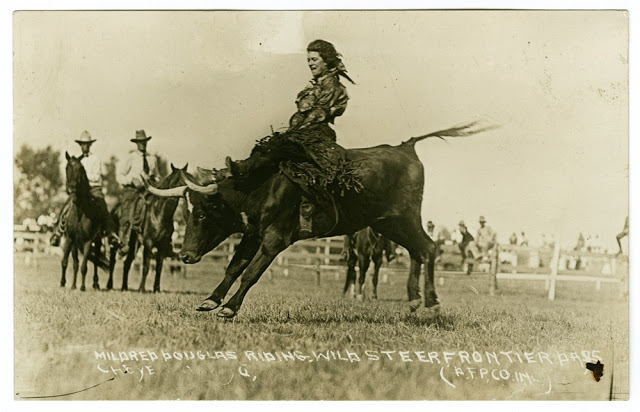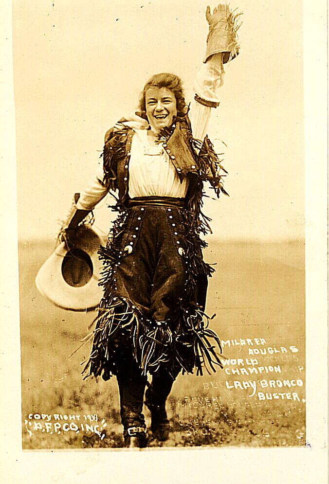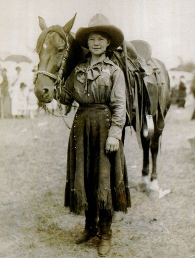 Mildred Douglas, world champion lady bronco buster, 1918Cowgirls on HorsebackA shot captured in 1912 shows Florence LaDue and her fancy lasso skills.Ethelyn Dectreaux, a rodeo rider, in 1935.Actress and rodeo champ Betty Miles poses for an epic pic. 1945Mildred Douglas Chrisman, an early cowgirl and stunt woman, rides a bull in 1930.Famed rodeo horsewoman Mabel Strickland in 1925.1930s rodeo gals.1920s Hollywood gave the American cowgirl a slightly more glam look as seen on actress Dale Evans.Cowgirl Kathleen Hudson, a member of the Junior Riding and Roping Club of Tulsa Mounted Troops, rounding up Herefords on the Oklahoma range in 1948.A woman and her horse hurdle a convertible at a California rodeo, 1934.In 1949, actors Wayne Burson and Wendy Waldron pose on set.Judy Garland embodying a cowgirlFox Hastings, a cowgirl and trick rider, being thrown by Undertow, one of the meanest horses at the first annual Los Angeles Rodeo, 1920s.“Ladies in Chaps”, 1920.An 1890 publicity photo for one of America’s greatest cowgirls, Annie Oakley.Woman’s best friend in 1940.Kitty Canutt, “champion lady rider of the world on Winnemucca,” on a bucking bronco, in 1919.Mildred Douglas riding wild steer, Cheyenne, Wyoming, 1917.Anna Perry-Fiske, Hawaii’s First Lady of Ranching was a real cowgirl, 1940s.Queeda Mantle on her way to the “Ride and Tie” rodeo in Craig, Colorado, in 1949.World champion female bronc rider Fannie Sperry Steele (1887-1983) at the 1913 Winnipeg Stampede.Bonnie McCarroll thrown from Silver, Pendleton, Oregon, September 1915.Miss Mamie Francis & Napoleon, 1910s.Margie Greenough On Bronc – 1943Alice Greenough on bronco, 1938Cowgirl, Prairie Rose Henderson, 1880-1939, champion bronc rider and fierce relay racer.Cowgirls on display in Washington, DC, 1923.Lucille Mullhall at 101 Ranch, Oklahoma, in 1909.‘A True Girl of the West’, Del Rio, Texas, 1906.Calamity Jane at the Pan-American Exposition in Buffalo, New York, circa 1901.Sadie Austin in Cherry County, Nebraska, in 1900.Harriet, Elizabeth, Lucie, and Ruth Chrisman at their sod house in Custer County, Nebraska, 1886.Look, ma! No hands.CowgirlsBuffalo Bill Wild West Show, 1907.CowgirlsCowgirl at Calgary Exhibition and Stampede, Alberta, 1912Miss Lucille Mulhall at the Calgary Exhibition and Stampede, Alberta, 1912Daisy Parsons at Calgary Exhibition and Stampede, Alberta, 1919Flores La Due performing fancy rope trick at the Calgary Exhibition and Stampede. 1912Vera Mcginnis was one of the first female riders to appear in trousers rather than a split skirt.“The Belle of the Ranch”, 19091906191119091909