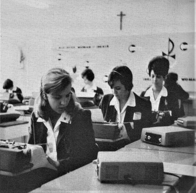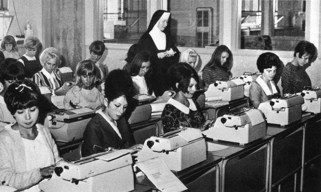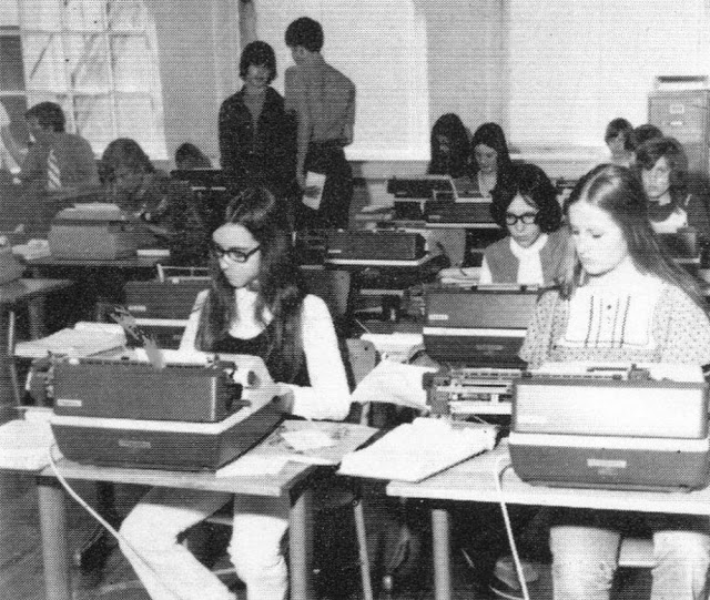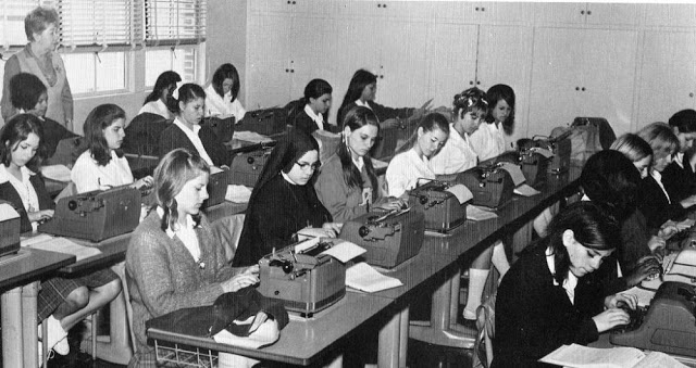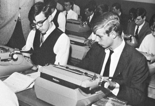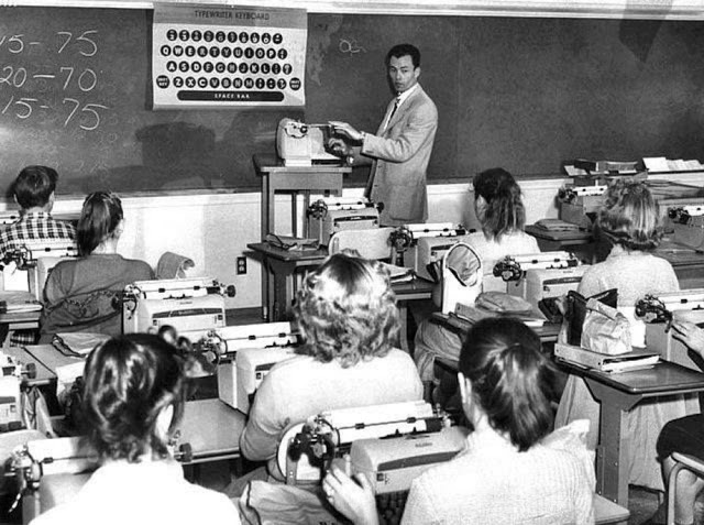 During the 1950s and ’60s typewriting was taught mostly in elementary schools, and there was a widely held conviction that typewriting skills might fast-forward a student’s acquisition of the English language — especially spelling. Through typing, students tend to become more aware of the forms that letter patterns take, especially the beginning and ending of words, as Bartholome W. Lloyd reported in his research, “Keyboarding/Typewriting in Elementary School.”