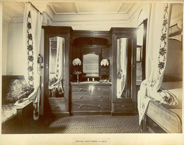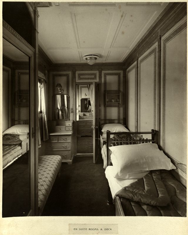 At full speed on the measured mile, circa 1906Stern view showing disposition of propellers, circa 1906Bow view during launching, circa 1906Grand entrance. A. deck, 1906Boat deck promenade, circa 1906Bookcase in library, circa 1906Children’s room, circa 1906Corridor A. deck, circa 1906En suite rooms, A. deck, circa 1906.En suite rooms, A. deck, circa 1906.First class smoking room, circa 1906General view of upper and lower dining saloon. Showing dome, circa 1906Library, looking across the vessel, circa 1906Lounge or music room, looking aft, circa 1906Lounge or music room, looking forward, circa 1906Mauretania kitchen, circa 1906Mauretania observation hall, circa 1906Ordinary state room, D deck, circa 1906Parlour suite. B deck, circa 1906Promenade deck, circa 1906Purser’s Bureau, on the Promenade Deck, Mauretania, circa 1906Regal suite bedrooms, starboard side, looking aft, circa 1906Regal suite parlour and dining room, port side, circa 1906Regal Suite parlour, circa 1906Seat in grand entrance. A. deck, circa 1906Second class dining saloon, circa 1906Second class drawing room, circa 1906Second class drawing room, circa 1906Second class lounge, circa 1906Second class smoking room, circa 1906Second class special state room, circa 1906Smoking room, looking aft, circa 1906Smoking room, looking forward, circa 1906Smoking room, port side, looking forward, circa 1906Special state room. D. deck, circa 1906Third class general activity room, circa 1906Upper dining saloon, circa 1906Verandah café, circa 1906Elevator on Mauretania, circa 1906Mauretania engine control room, circa 1906Mauretania navigation bridge, circa 1906