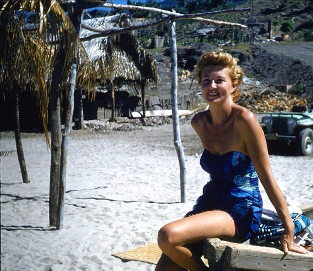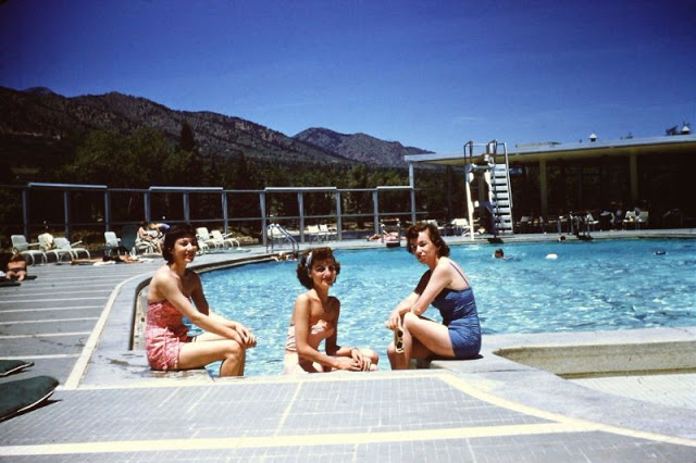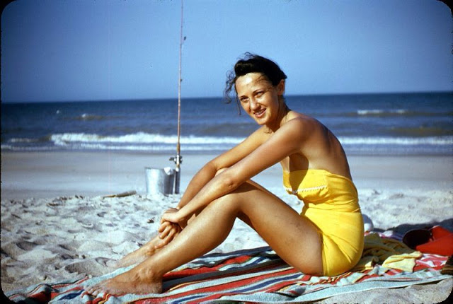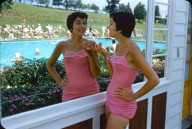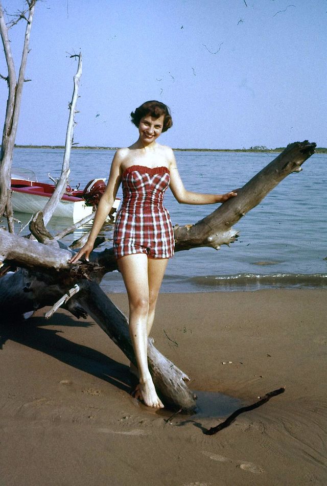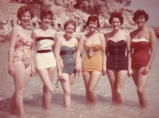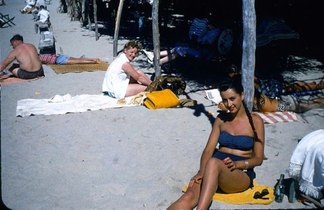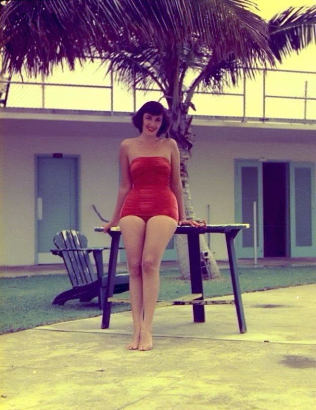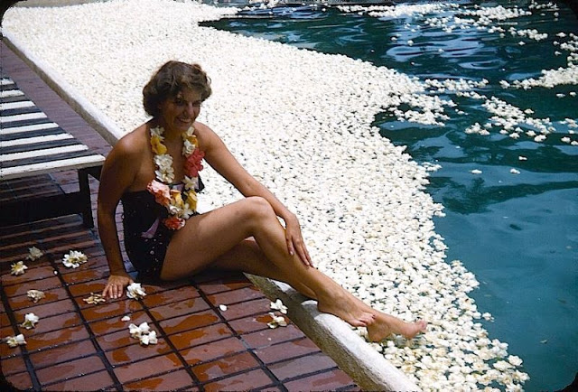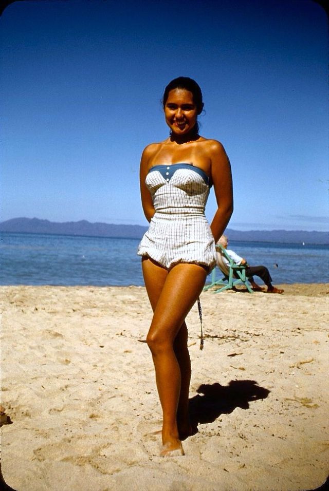 Ladies of the 1950s sure knew how to make an entrance to the beach or at a tiki poolside party.