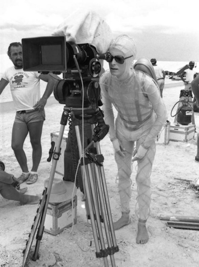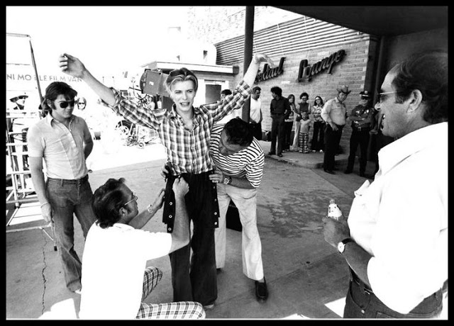 These photos are behind the scenes of David Bowie filming ‘The Man Who Fell To Earth’ in 1975.