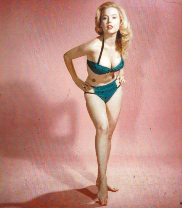 Brosmer was a forerunner of such stars as Marilyn Monroe and Jayne Mansfield. Her phenomenal measurements: 38-18-36 (in inches) and 96-45-91 (in centimeters) gave her the title “The most gorgeous body of 50s”. During the 1950s, she was a popular commercial model and pin-up girl.