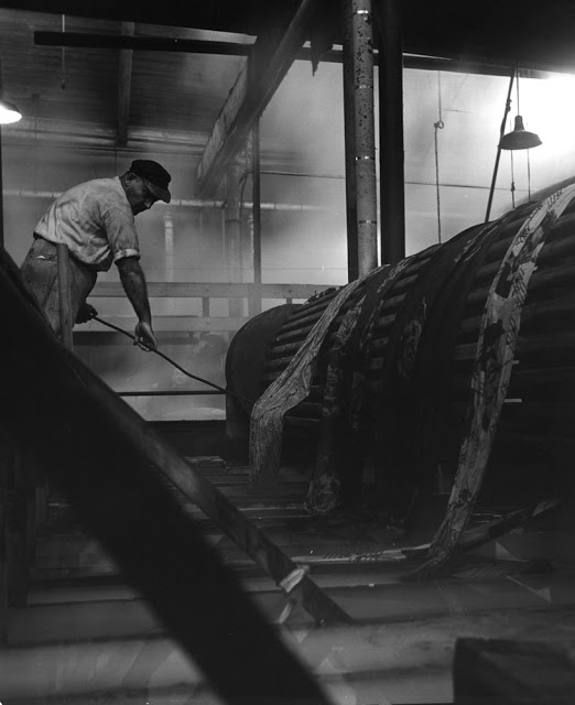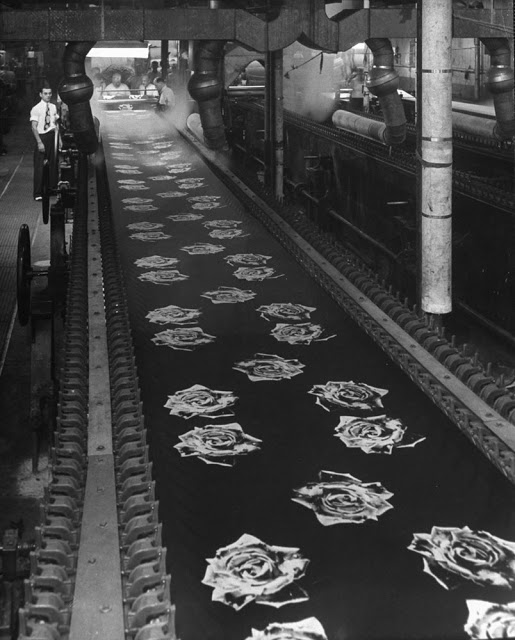 In the 1940s, men and women had been pushing the technical limits of photography ever since the medium was born, well over a century before — but no one , it seems, had ever bothered to devote the energy, time and money it would take to devise a method for printing pictures directly on to fabric. Two New York-based companies were out to change that grave dereliction: by 1947, the “photographic fabrics [were] being produced in quantity by two new and rival processes.”