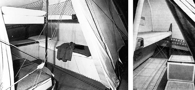 Other than the control car, the crew and work areas aboard Hindenburg were primarily located along the keel, including officer and crew sleeping quarters, the radio room, post office, electrical room, work rooms, and rope handling areas for the mooring lines.