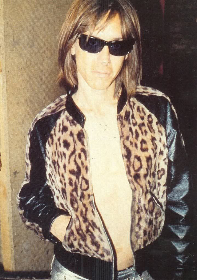 Initially playing a raw, primitive style of rock and roll, the Stooges sold few records in their original incarnation and gained a reputation for their confrontational performances, which often involved acts of self-mutilation by Pop. He had a long collaborative and personal friendship with David Bowie over the course of his career, beginning with the Stooges’ album Raw Power in 1973. Both musicians relocated to West Berlin to wean themselves off their respective drug addictions and Pop began his solo career by collaborating with Bowie on the 1977 albums The Idiot and Lust for Life, Pop usually contributing the lyrics. Throughout his career, he is well known for his outrageous and unpredictable stage antics, poetic lyrics, and distinctive voice. He was one of the first performers to do a stage-dive and popularized the activity. Pop, who traditionally (but not exclusively) performs bare-chested, also performed such stage theatrics as rolling around in broken glass and exposing himself to the crowd.