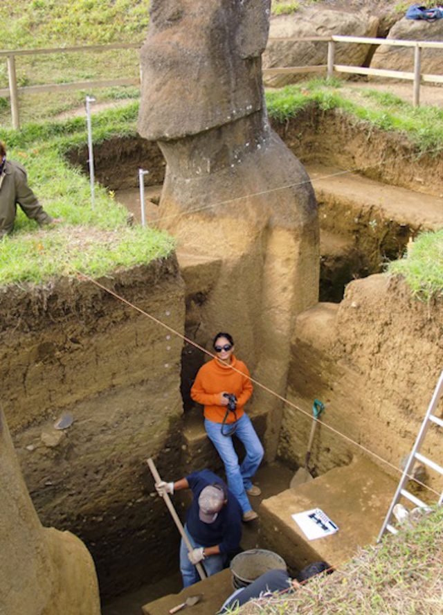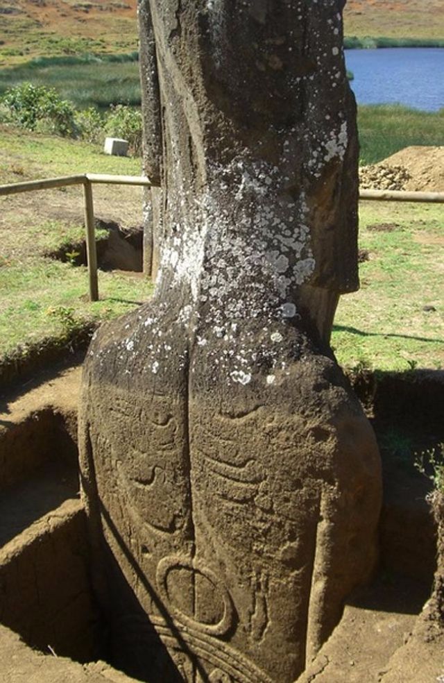 Archaeologists have studied the statues on the island for about a century, and have actually known about the hidden bodies since the earliest excavations in 1914. The first photographs of the hidden torsos emerged in 2012, two years after Jo Anne Van Tilburg, director of the Easter Island Statue Project, began excavating the monoliths with the help of local Rapa Nui people. These amazing pictures below show moment archaeologists discovered Easter Island statues were covered in tattoos: