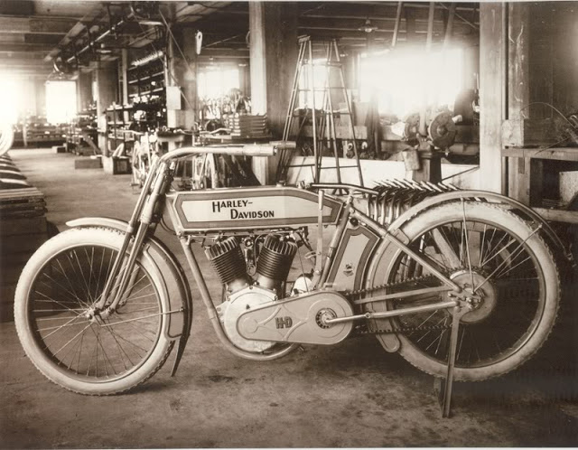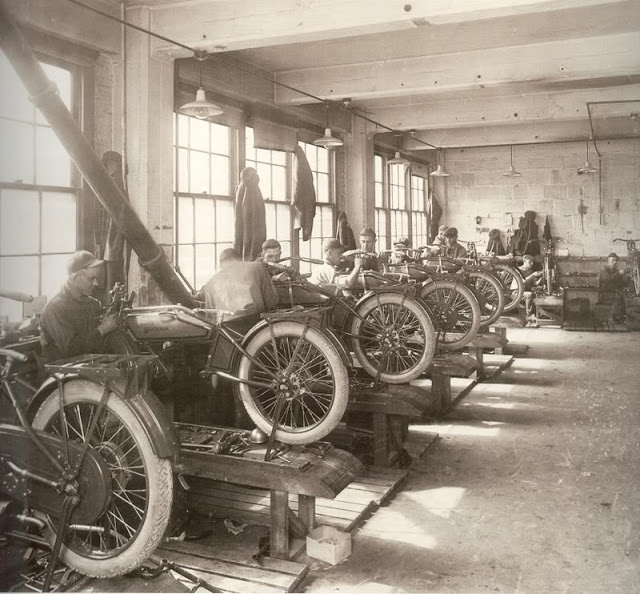 Here are some rare photographs from inside the Harley motorcycle factory from the 1910s and 1920s.