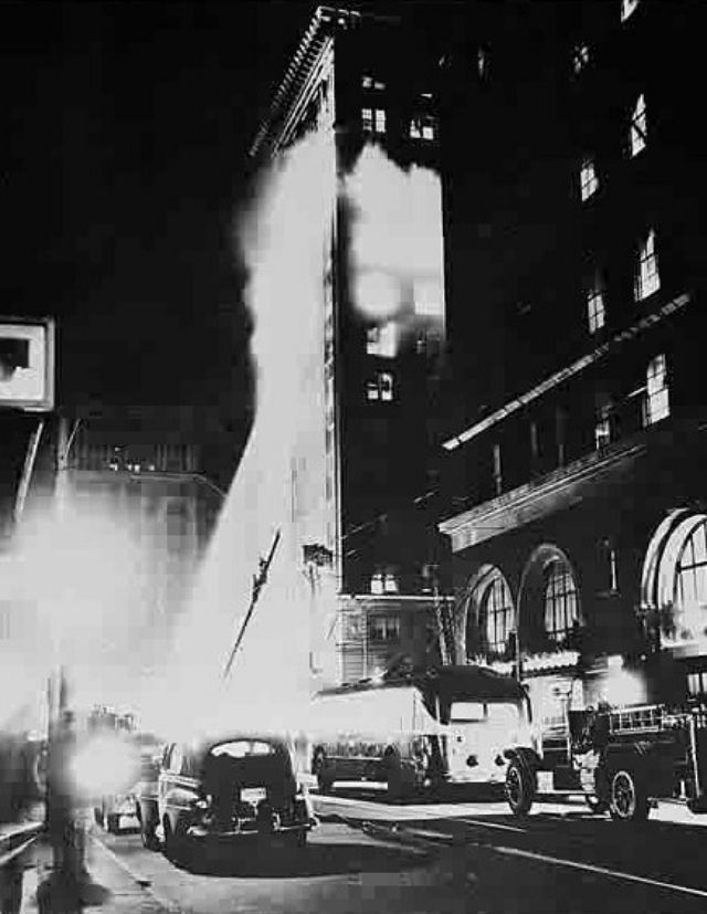 Hearing sirens, he rang the fire department and said “Press photographer. Where’s the fire?” He was told “Winecoff Hotel.” He caught a cab there with his Speed Graphic camera and five flashbulbs. He was the first photographer there.