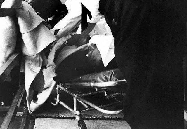 Louw captured the chaos and emotion that hovered over that April evening. He shot four rolls of film, but one image in particular remains emblazoned on the memories of those alive to see it at the time. In the moments following the shot, as King lay unconscious on the balcony, his comrades turned their attention to a sight in the distance: the assassin, getting away. They pointed their fingers in concert in the direction of his flight.