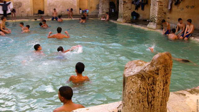 A two thousand year old public bathhouse from the Roman period is still used by locals in the town of Khenchela, Algeria. Most of the bathhouse has been preserved, but the ancientness of the place is still apparent in the architecture.