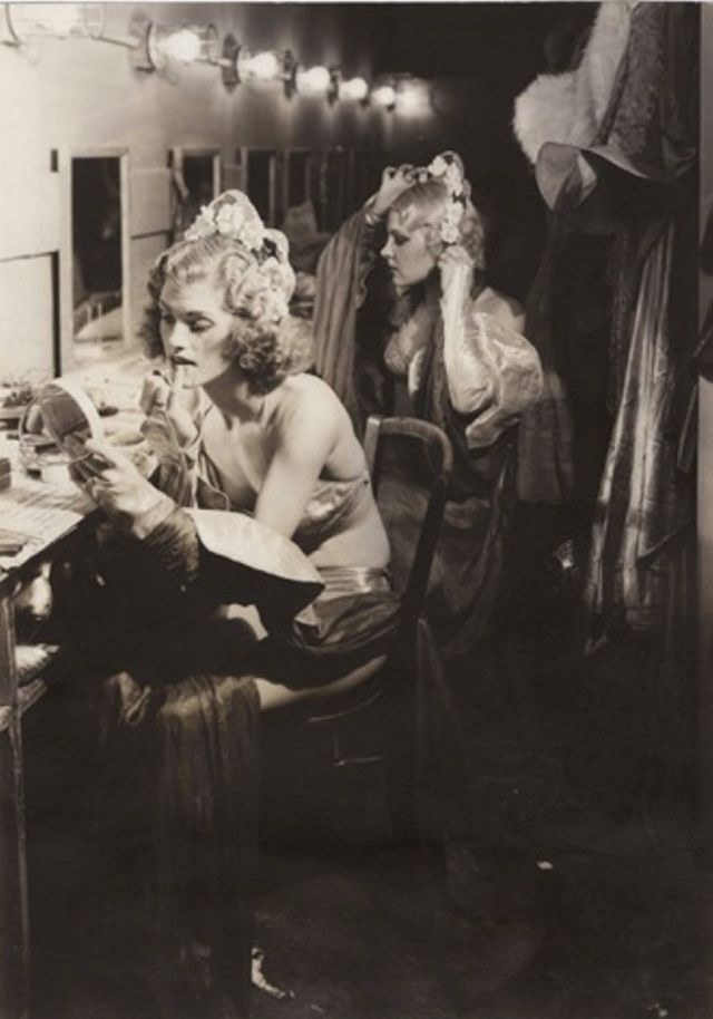 In 1936, Margaret Bourke-White went behind the scenes with top burlesque acts to show them setting their hair and tweaking their nipples before they hit the stage. The photographs explore New York’s most controversial burlesque venues and their dancers, where Bourke-White achieved an unprecedented proximity to her subjects. These photographs show both Bourke-White’s gifted composition as well as her compassion: the warm-tone contact prints reveal a gentler side than is often portrayed through her better-known war photographs.