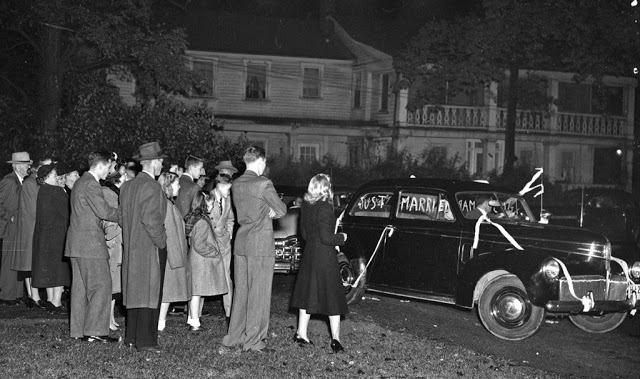 A wedding car in 1966A Ford Super Deluxe convertible with a 1949 Virginia license plate.1967 Jaguar XKEJust Married – A wedding car in Lawton, Oklahoma. April, 1958A newlywed couple admires their post-wedding car in 1956.Wedding car in Phoenix, Arizona, 1959.Sucker. April 1953.“First Stop”Bride and groom driving off in an early seventies Triumph 1300.Wedding car decorated, ca. 1960sLincoln Premiere – Wedding car scene, 1958ca. 1950sMercury wedding car, 1948‘Aisle Alter Hymn’, wedding car, ca. 1940s.Wedding car, ca. 1970s1921 Dodge wedding carA wedding in Worthington, Ohio in 1948.