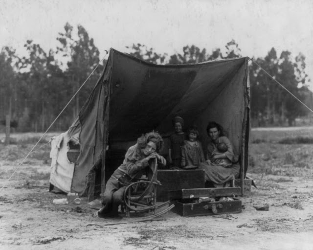 “I did not ask her name or her history. She told me her age, that she was thirty-two. She said that they had been living on frozen vegetables from the surrounding fields, and birds that the children killed. She had just sold the tires from her car to buy food. There she sat in that lean- to tent with her children huddled around her, and seemed to know that my pictures might help her, and so she helped me. There was a sort of equality about it.” – Dorothea Lange