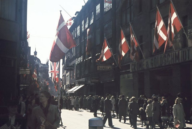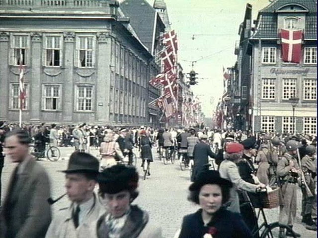 These rare color pictures from The National Museum that captured street scenes of Copenhagen from the days around the liberation.