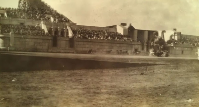 The enormous chariot race arena was constructed at what is now the intersection of La Cienega and San Vicente Boulevards in Los Angeles. The chariot race sequence was filmed in one day and MGM made the most of it. They made the day of filming a holiday for the studio which gave the day a circus-like feel. With the exception of the leading men, Ramon Navarro and Francis X. Bushman, the other titled characters from the movie are today largely unknown. However, because of the holiday, established stars such as John and Lionel Barrymore, Joan Crawford, Marion Davies, Douglas Fairbanks, John Gilbert, Dorothy and Lillian Gish, Harold Lloyd, and even America’s sweetheart—Mary Pickford made special appearances in the crowd scenes. While they weren’t matinee idols, Samuel Goldwyn and Sid Grauman (of the Chinese Theater) also showed up on screen rooting for Ben-Hur.