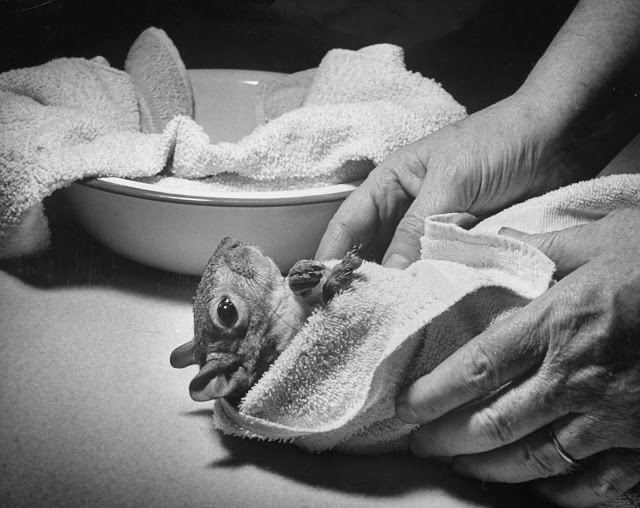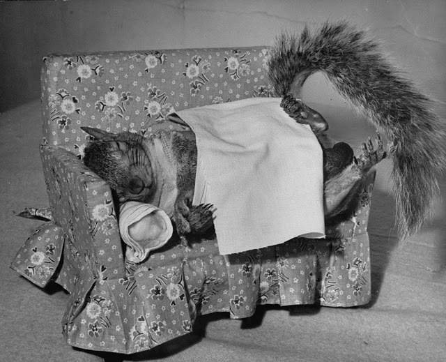 In the early 1940s, LIFE magazine reported that a Mrs. Mark Bullis of Washington, D.C., had adopted a squirrel “before his eyes were open, when his mother died and left him in a tree” in the Bullis’s back yard. LIFE then went on to observe that the squirrel, dubbed Tommy Tucker by the Bullis family, “is a very subdued little animal who has never had a chance to jump around in a big tree.”