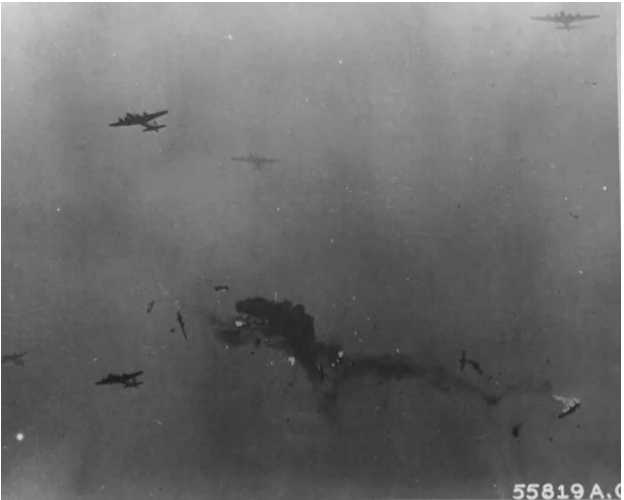 Two crewmembers were killed instantly, but the pilot held her level long enough for the crew to get out and they were taken prisoner of war.