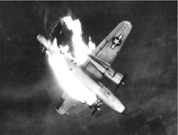 There was a myth surrounding this footage that it was an American bomb striking the wing of the plane.