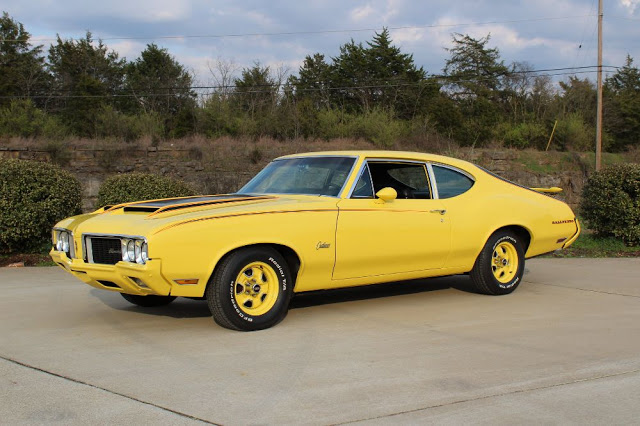 To fight the tightening regulations destroying the muscle car class, Oldsmobile introduced a bright yellow Rally 350 model. It was a clever way to avoid high insurance premiums with smaller yet still powerful 350 V8 engines producing 310 HP. This model was basically a 442 muscle car, but with a smaller engine and a lower price.