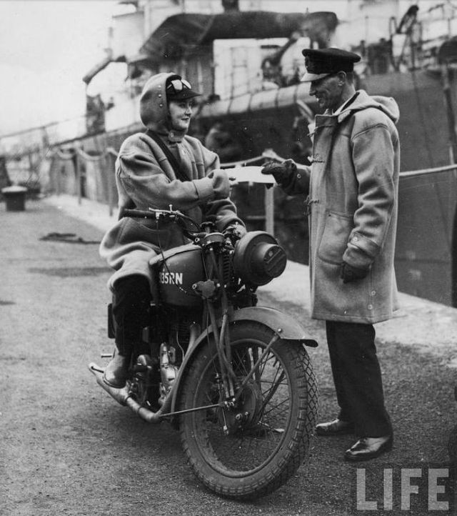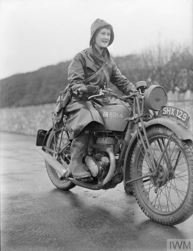 The British Royal Navy wanted women who could not only ride motorcycles, but also maintain their own machines. The first women chosen for dispatch duty were well-known competition riders from local motorcycle race circuits. As war-time need increased, more women were trained, many of whom served with great distinction.