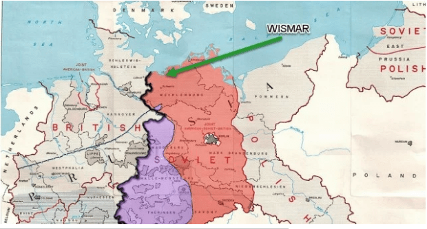 Shortly after Varsity that the unit got orders to march north to Wismar. Wismar is a city on the Baltic coast of Germany. It sits at the northern end of a chokepoint between the sea and Lake Schweringer and is a transportation hub. Winston Churchill recognized the city’s importance and knew that if it fell into Russian hands too quickly, it could allow them to advance far past the agreed upon lines set up at the Yalta conference and take most of Northern Germany and even Denmark.