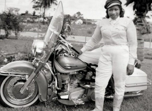 In the 1950s, Bessie settled in Miami, Florida. She became a licensed practical nurse and founded the Iron Horse Motorcycle Club. One time, Bessie won a flat track race but was denied the prize when she took off her helmet and race officials realized she was a woman. Riding locally while standing on her Harley earned Bessie the nickname “Motorcycle Queen of Miami.”