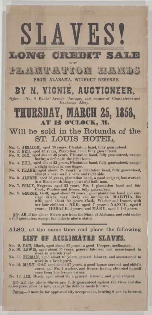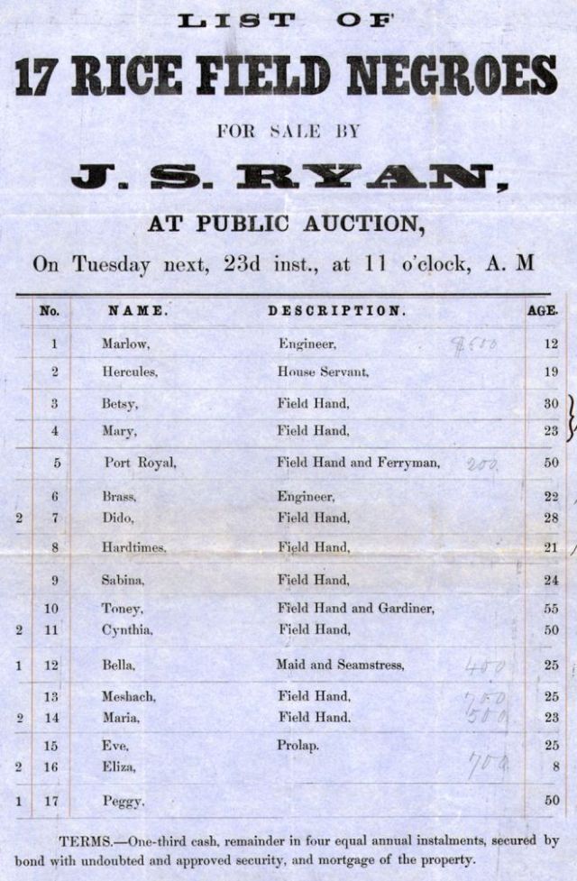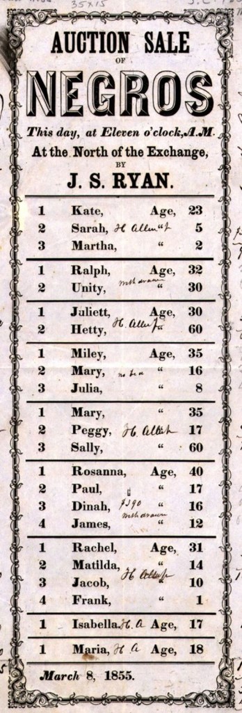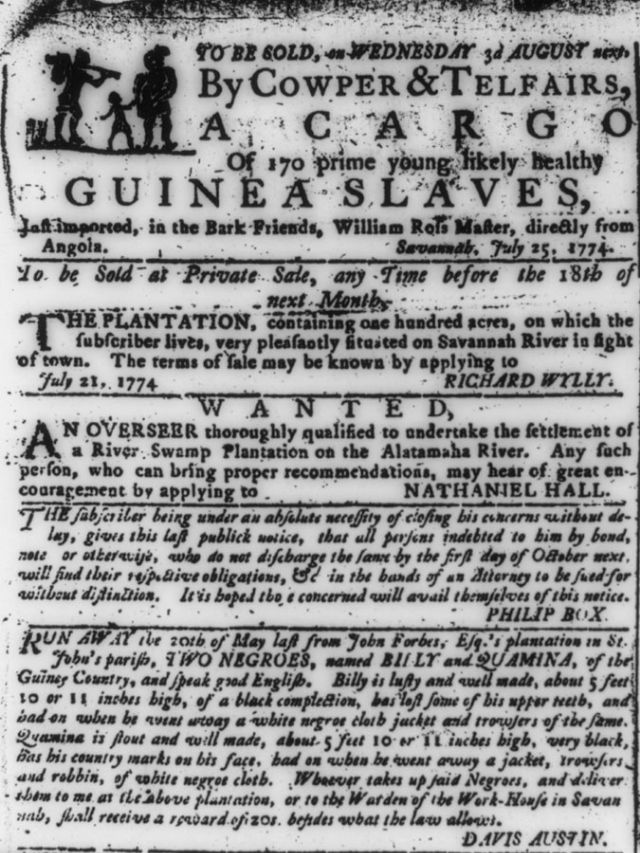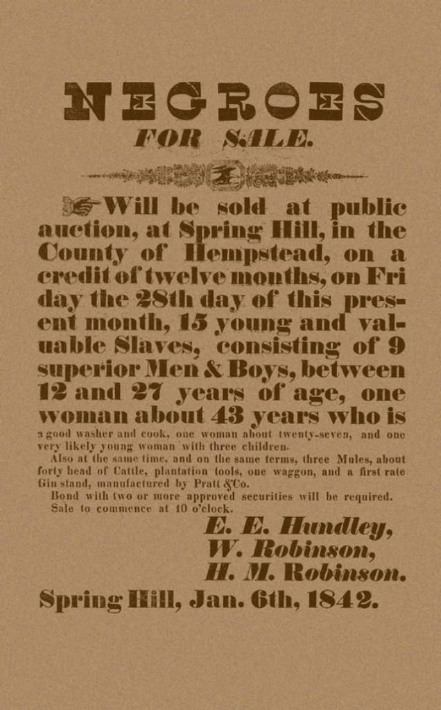 Slave auctions were advertised when it was known that a slave ship was due to arrive. Posters like these would be displayed around the town.