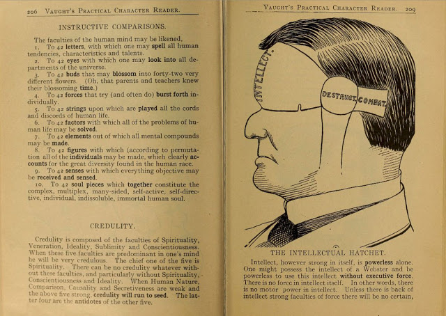 It’s both fascinating and disturbing to look through the diagrams from old phrenology texts. Although phrenology was at the height of its popularity during the first half of the 19th century, it enjoyed a bit of resurgence in the early 20th century.