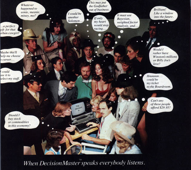 “MusicSystem generates the sound of any musical instrument – real or imagined! Solo or sextet. Rock or classical. Laid-back or loud. At home, the concert hall, or the classroom. MusicSystem sets new standards for computer generated music… Drop by your Apple Dealer and ask to hear Mountain Music for yourself. Now only $395.00” (1982)“With a calculator, pencil and paper you can spend hours planning, projecting, writing, estimating, calculating, revising, erasing and recalculating as you work toward a decision. Or with Personal Software VisiCalc program and your Apple II you can explore many more options with a fraction of the time and effort you’ve spent before. ” (1980)“The North Star Horizon computer can be found everywhere computers are used: business, engineering, home – even the classroom. Low cost, performance, reliability and software availability are the obvious reasons for Horizon’s popularity. But when a college bookstore orders our BASIC manuals, we know we have done the job from A to Z. Don’t take our word for it. Read what these instructors have to say about the North Star Horizon: ‘The Horizon is the best computer I could find for my class. It has an almost unlimted amount of software to choose from. And the dual diskette drives mean that we don’t have to waste valuable classroom time loading programs, as with computers using cassette drives.’” (1980)“Let’s face it. We all have to make decisions. Decisions that can change our lives. Decisions that make us happy or unhappy. Decisions that could win us fame or fortune. Now, DecisionMaster can help you make the best decisions of your life. Use Bayesian theory to peer into the future… even if you’ve never heard of the Bayes’ Rule…. If you buy only one computer program this year, make it DecisionMaster. And when it speaks, listen.” (1980)Creative Computing magazine (October 1981)“We’re Corona Data Systems and we’ve made Starfire, a Winchester disk just for Apple II. What’s in it for you? 5 million characters of storage. And that’s not all. You’ll get Corona’s Disk Partitioning which allows for up to 16 separate operating systems such as Apple DOS and Pascal, all sharing the same disk.” (1982)“Magic Window transforms your Apple Computer into a sophisticated word processor unlike any other. Streamlined to meet all professional needs yet be easy to understand and operate. Magic Windo can be used by anyone in minutes. Simulating a standard typewriter, everyone has immediate rapport with the system as no special training is required….. Magic Window solves the Apple’s display problem without expensive hardware additions. Using your video screen as a “window” you view what you type from any position selected with a single keystroke….” (1982)Creative Computing magazine (August 1982)“If you guessed that a Practical Peripherals Microbuffer printer buffer saves time, you’re right. For the way it works, this inexpensive product is the most practical addition to your microcomputer system ever. With Microbuffer, you don’t have to wait for your printer to finish before you resume using your computer. Data is received and stored at fast speeds, then released from Microbuffer’s memory to your printer. This is called buffering. The more you print, the more productive it makes your workflow.” (1983)“If you’re tired of inflexible personal software, it’s time for SAVVY. SAVVY teaches your computer to adapt to you. It’s part hardware, part software, and part remarkable. It lets your computer see things as you see them. do things the way you like to do them. It even allows for those unavoidable entry errors that we all sometimes make. What’s the secret? SAVVY can recognize patterns (other software products can only recognize exact duplicates) and you can teach it to recognize your language. That means it will carry out your commands instead of flashing ‘error’ messages.” (1983)Advanced Logic Systems (ALS) CP/M Card for Apple IICreative Computing magazine (September 1983)Creative Computing (January 1985)Creative Computing, January 1985Kilobaud Microcomputing magazine (June 1979)Racunar magazine (1987)Racunari magazine (1988)Props to Tandy, which started as a leather goods company and ended up leading the personal computer revolution along with Apple and Commodore.1986 – BodyLink COMET (COmputerized Muscle Exerciser and Trainer)“The system is packaged in a totally shielded single case, housing two full-size dual-sided floppy disk drives, a full sized 12? video monitor, the keyboard and the SDS-100 computer power. For the more technical features: 32K Random Access Memory, 1,025,024 Bytes of on line disk storage…”