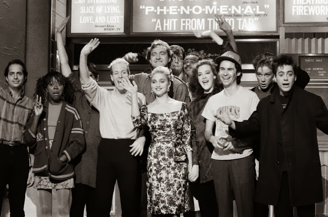 On November 9th, 1985, Madonna hosted the 11th season premiere of Saturday Night Live. The episode not only marked her first ever appearance on the show, but is also the only episode she has ever hosted to date.She also did a Latin style cover of A-ha’s “Take On Me,” with background vocals provided by Jon Lovitz, Damon Wayans, and Robert Smigel.Working as an assistant to Penn & Teller, during the duos guest performance.Getting some early practice on perfecting her faux British accent while playing Princess Di in the sketch “Nancy Reagan Meets Charles & Di.”During the opening monologue she poked fun at her recent wedding to Sean Penn.Giving off some “La Isla Bonita” vibes as ‘Marika’ in the sketch “El Spectaculare De Marika.”But more importantly, she shared the stage with Robert Downey Jr.!Terry Sweeney as ‘Clint Weston’ and Madonna as ‘Melinda Zumont’ in the sketch “Pinklisting,” which was social commentary on the growing paranoia of AIDS in Hollywood.Channeling Marilyn Monroe in the “National Inquirer Theatre” sketch, with Anthony Michael Hall as Bobby Kennedy, and Randy Quaid as John F. Kennedy.The sketch was a parody of Who’s Afraid of Virginia Woolf? and featured Jon Lovitz as Prince Charles, Randy Quaid as Ronald Reagan, and Terry Sweeney as Nancy Reagan.Taking her final bows during the closing credits with SNL cast members: (L-R) Jon Lovitz, Danitra Vance, Nora Dunn, Terry Sweeney, Randy Quaid, Joan Cusack, Dennis Miller, Anthony Michael Hall, and Robert Downey Jr.