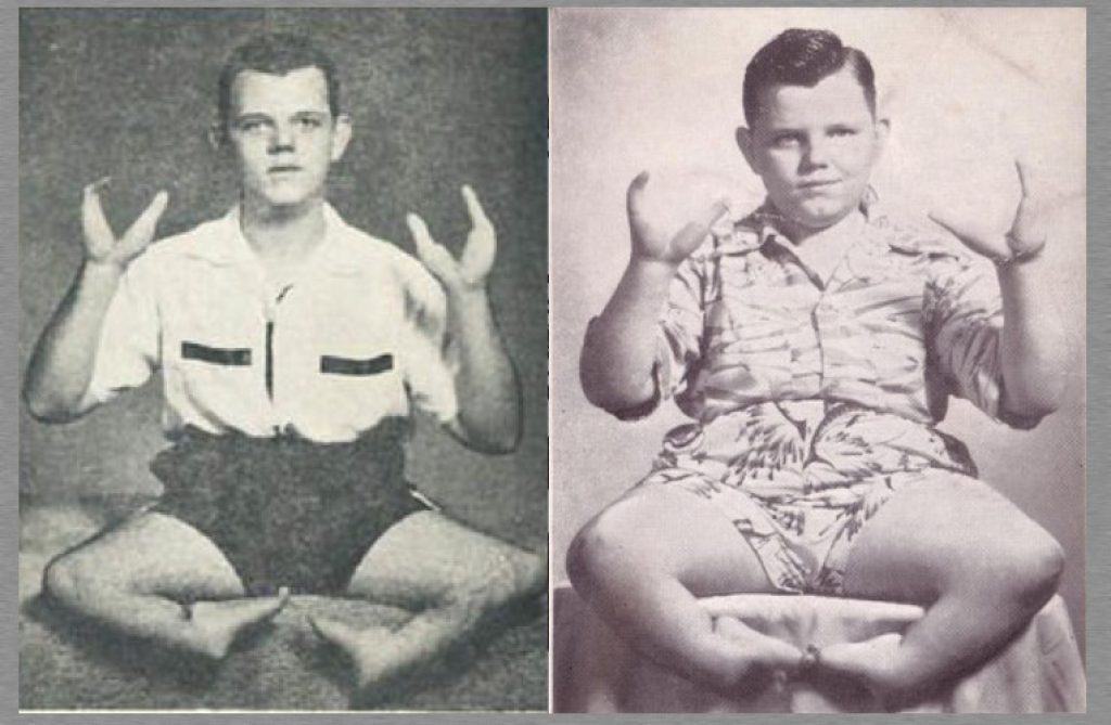 Born in Pittsburgh, Pennsylvania in 1937, Grady Stiles Jr., aka “Lobster Boy”, was one in a long line of people in the Stiles family, dating back to 1840, who suffered from a rare and strange physical condition known as ectrodactyly. This genetic condition was one in which the fingers and toes are fused together to form claw-like extremities.