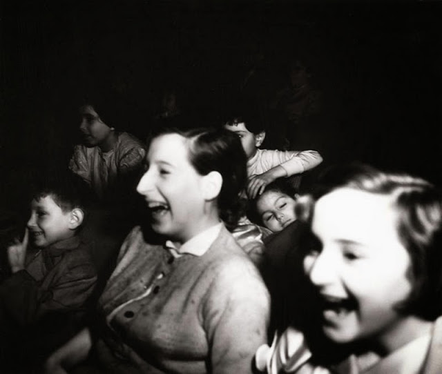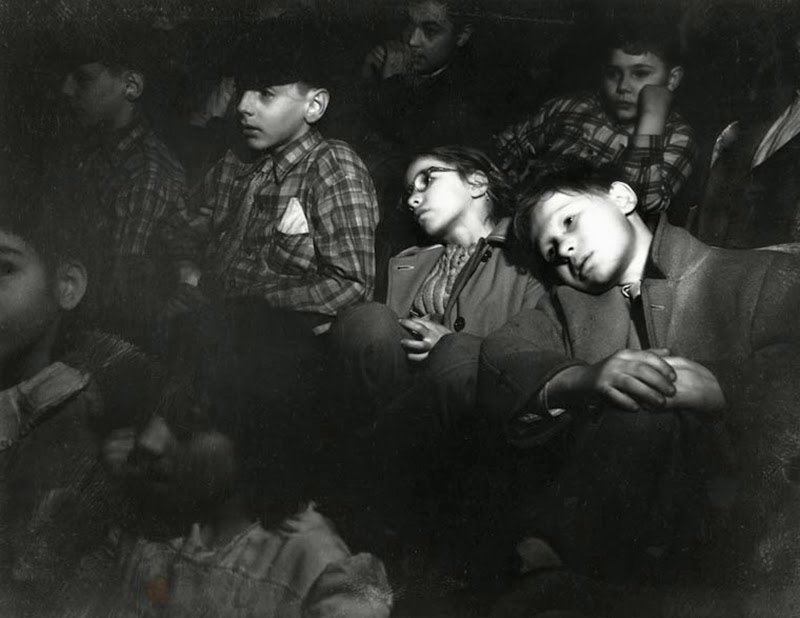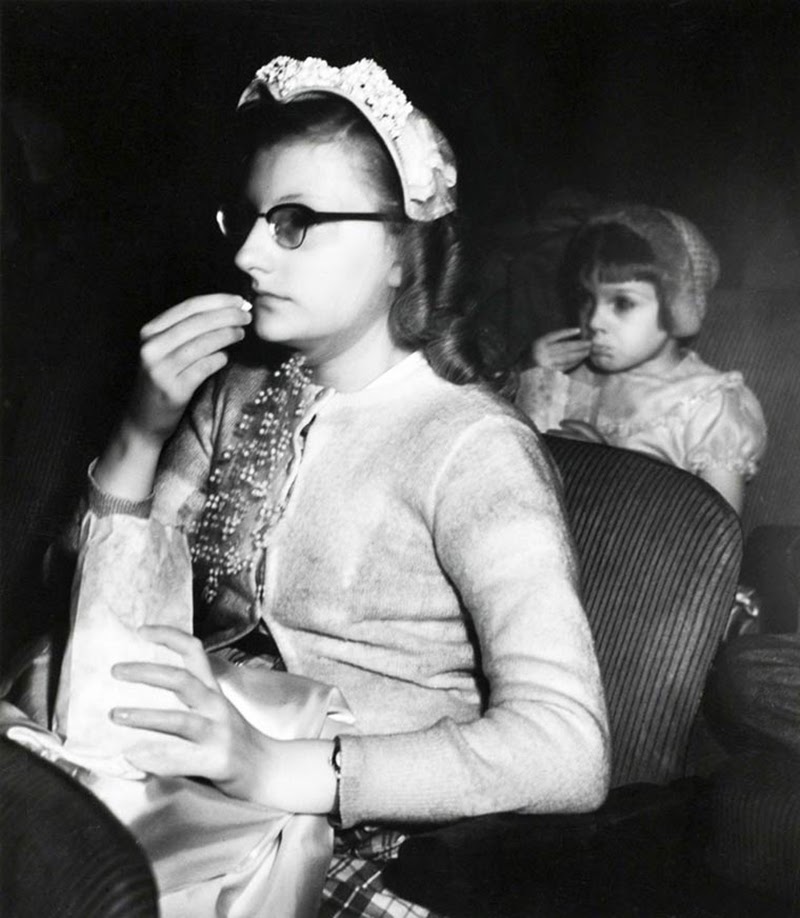 Weegee is best known for his images of urban crime, death, and nightlife but these photographs are part of a series Weegee made in New York City theaters in the mid-1940s with infrared film. From bemused children to entwined couples, lonely sleepers to exhilarated teenage girls, this gallery of portraits constitutes a powerful, unique, and moving tribute to cinema lovers. The passion conveyed in these images—their lyricism, magic, and poetry—remind us of the quintessential role played by the arts, and specifically still and moving images, in our society.