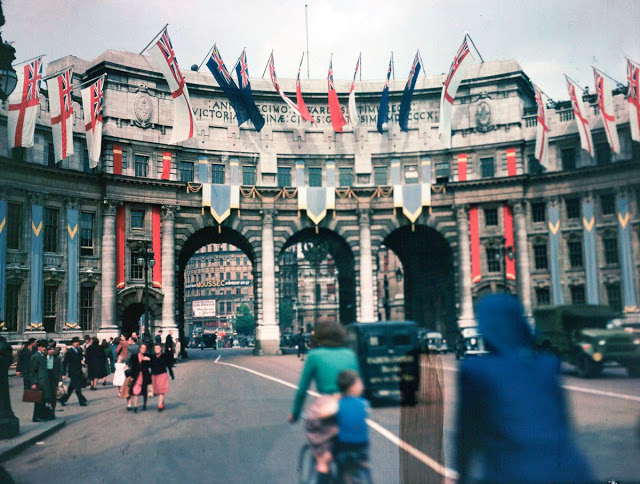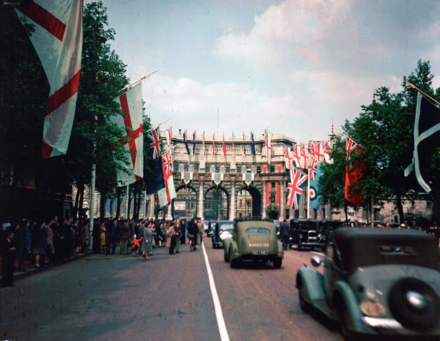 These color photos of London, spanning from the dark days of the Blitz to the triumphant celebrations of VE Day, were taken in Dufaycolor, a little-known photography process. They give another perspective on the period between 1943 and 1945 when Nazi Germany carried out a sustained aerial bombing campaign against Britain.
