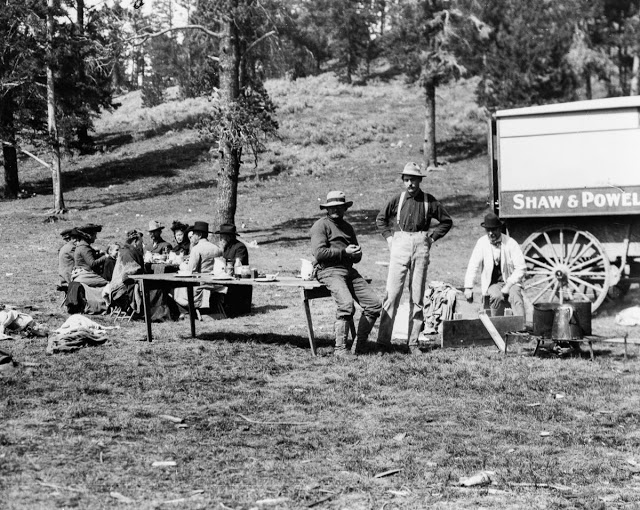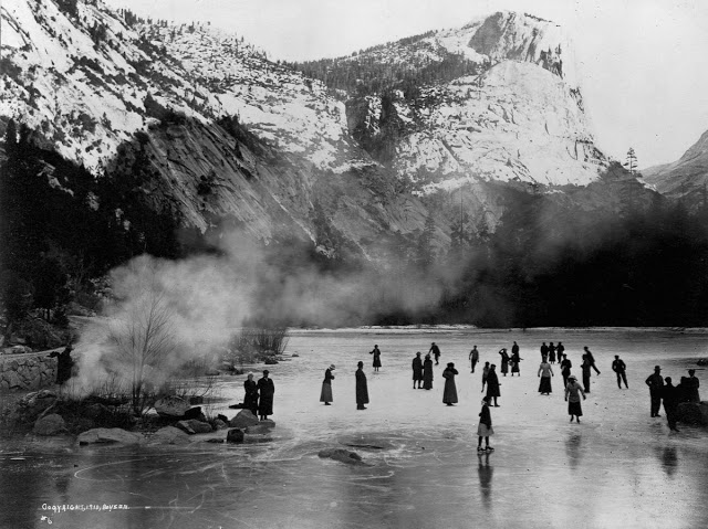 A geological surveyor explores the lower basin of Mammoth Hot Springs in Yellowstone, c.1870.The Annie, reportedly the first boat ever launched on Yellowstone Lake, 1871.Tourists drive their car on a dirt road along Yellowstone River 1899.Tourists look out over the Grand Canyon, c.1900.The Geyser Basins at Yellowstone, c.1900.The gateway arch at Yellowstone, c.1900Tourists skate on a frozen lake in Yosemite, c.1910.A party of tourists in Mt. Rainier National Park, 1911.Tourists ride through Mt. Rainier National Park 1909.Tourists and guides picnic in Yellowstone, 1903.Tourists ride up a trail in Rocky Mountain National Park, 1909.Tourists boat across Crater Lake, 1912.Tourists watch the scalding water from the Excelsior Geyser flow into the Firehole River in Yellowstone, 1917.President Theodore Roosevelt pays a visit to Yellowstone, 1903.Tourists slide down a slope in Yosemite, 1903.A member of a government geological survey stands next to Old Faithful in Yellowstone, two years before its designation as a National Park, 1870.Tourists peer over a cliff into the Grand Canyon, 1880Kitty Tatch and friend dance on the overhanging rock at Glacier Point in Yosemite, c.1890.Tourists ride through Yosemite, c.1900.Tourists pose for a picture in front of Yosemite Falls, c.1900.A group of Yosemite tourists and their guide, c.1900.Tourists ride the Glacier Point trail in Yosemite, 1901.Tourists at Old Faithful in Yellowstone, 1901.The view of Yosemite Valley from Inspiration Point, 1902.Tourists look from Clouds Rest over the Little Yosemite Valley to Mount Clark, 1902.Tourists on Clouds Rest in Yosemite, 1902.Tourists at Mirror Lake in Yosemite, 1902.A tourist looks out over the Yosemite Valley, 1902.A tourist stands on Glacier Point with Yosemite Falls in the background, 1902.Climbers scale Mt. Rainier, 1910.Tourists pose on Glacier Point above the Yosemite Valley, 1887.Tourists climb Paradise Glacier in Mt. Rainier National Park, 1911.A man stands behind the “Pulpit Terrace” formation at the Mammoth Hot Springs in Yellowstone, 1904.A rider on a trail at Glacier National Park, 1916.President Theodore Roosevelt addresses a crowd at the entrance to Yellowstone National Park, 1903.