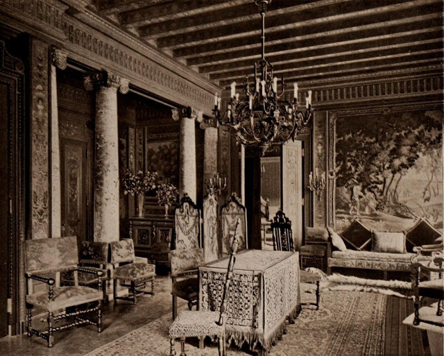 The Astoria Hotel opened in 1897 on the southwest corner of Fifth Avenue and 34th Street, next door to the Waldorf. It was also designed in the German Renaissance style by Hardenbergh, at a height of about 270 feet (82 m), with 16 stories, 25 public rooms and 550 guest rooms. The ballroom, in the Louis XIV style, has been described as the “pièce de résistance” of the hotel, with a capacity to seat 700 at banquets and 1,200 at concerts. The Astor Dining Room was faithfully reproduced from the original dining room of the mansion which once stood on the site.