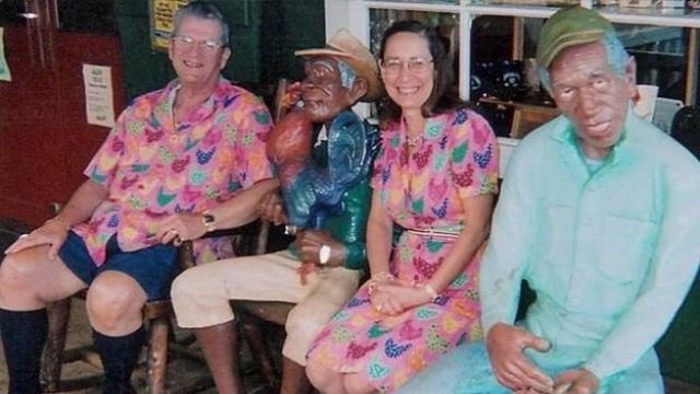 It was in 1977 that the Featherstones first slipped into the same looks – a pair of polyester ‘play shirts’. Then on Easter Sunday of the same year Mr Featherstone stepped out in slacks, a sport coat and pink silky shirt while his wife donned a pink, silky dress.