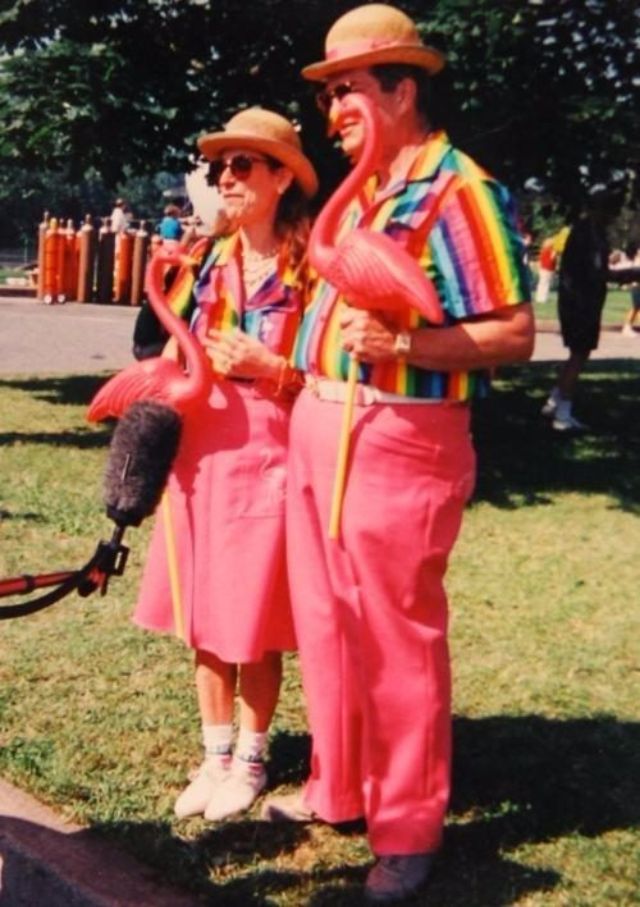 Donald Featherstone, who made a fortune from inventing the plastic pink flamingo lawn ornament in the late Fifties, and his wife Nancy, told The Sun that they even phone each other when they are not together to ensure that their style is in sync.