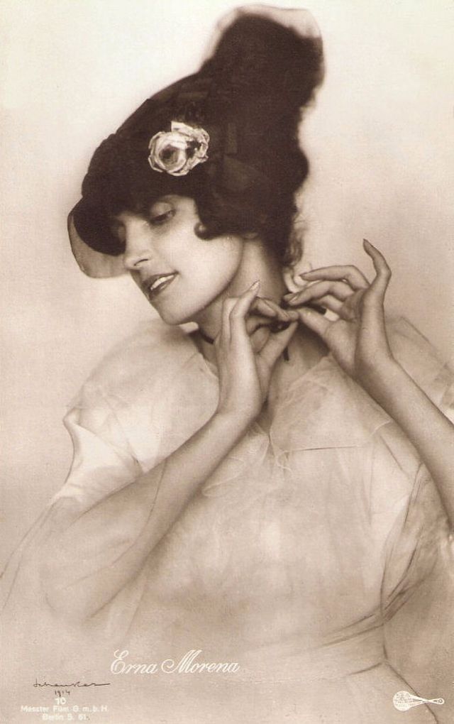 Erna Morena (1885-1962), born Ernestine Maria Fuchs, had an enormous career in German silent cinema in the 1910s and 1920s, and until the mid-1930s she was regularly performing in German sound films.