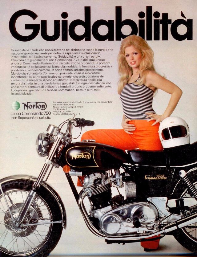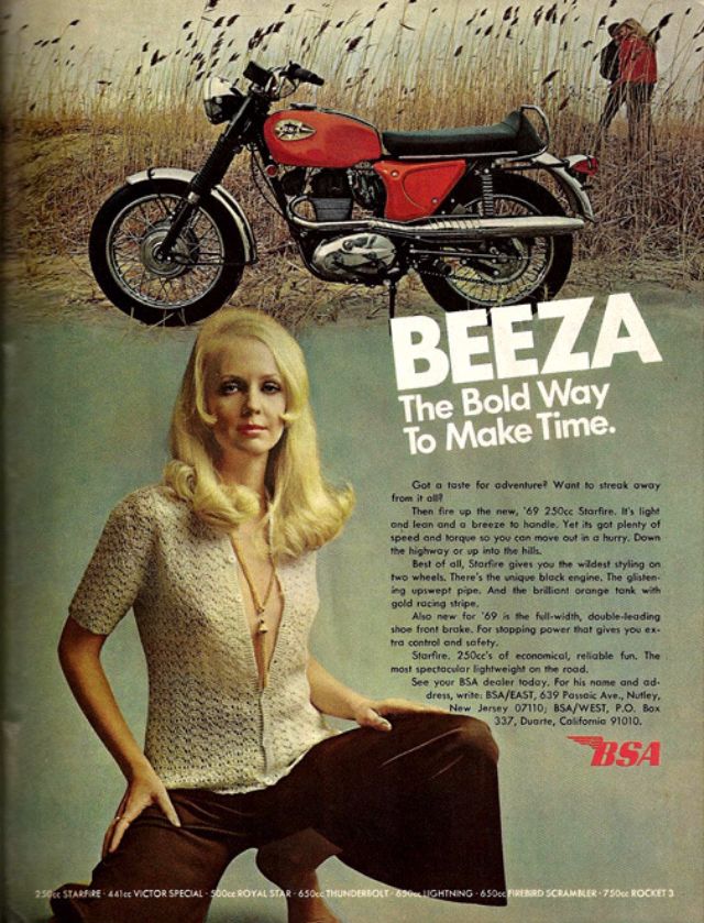 Before ‘political correctness’ was ever invented, the motorcycle industry loved to target males (sorry ladies) using some good old fashioned ‘sex sells’ tactics. They’d usually do it with headlines filled with sexual innuendo and many, many beautifully seductive women. Women that stared you in the eye and said “Purchase this fine motorbike and you will find yourself swimming in a ocean of pre-feminist, lose-moraled women in see-through clothing without any buttons.”