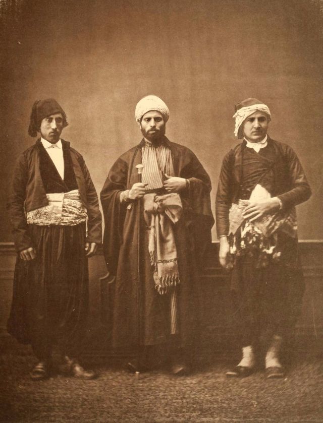 In this period men wore outer items such as ‘mintan’ (a vest or short jacket), ‘zibin’, ‘salvar’ (trousers), ‘kusak’ (a sash), ‘potur’, ‘entari’ (a long robe), ‘kalpak’, ‘sarik’ on the head; ‘çarik’, ‘çizme’, ‘çedik’, ‘Yemeni’ on the feet. The administrators and the wealthy wore caftans with fur lining and embroidery, whereas the middle class wore ‘cübbe’ (a mid-length robe) and ‘hirka’ (a short robe or tunic), and the poor wore collarless ‘cepken’ or ‘yelek’ (vest).