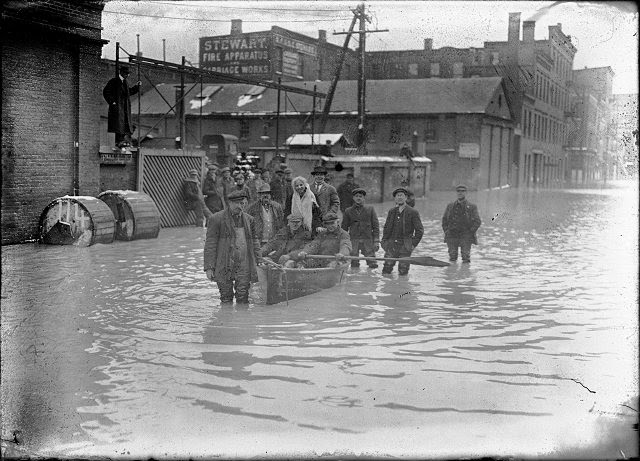 State and local communities handled much of their own disaster response and relief in 1913. The American Red Cross, a small organization at that time, focused its efforts in more than one hundred of Ohio’s hardest-hit communities, including Dayton, and served six of Indiana’s hardest-hit counties. Ohio governor James M. Cox called on the state legislature to appropriate $250,000 (about $11 million in today’s dollars) for emergency aid. Indiana governor Samuel M. Ralston appealed to Indiana cities and other states for relief assistance. Many communities cared for their own flood victims with Red Cross assistance, charitable donations, and contributions from local businesses, industries, and service organizations. (Wikipedia)