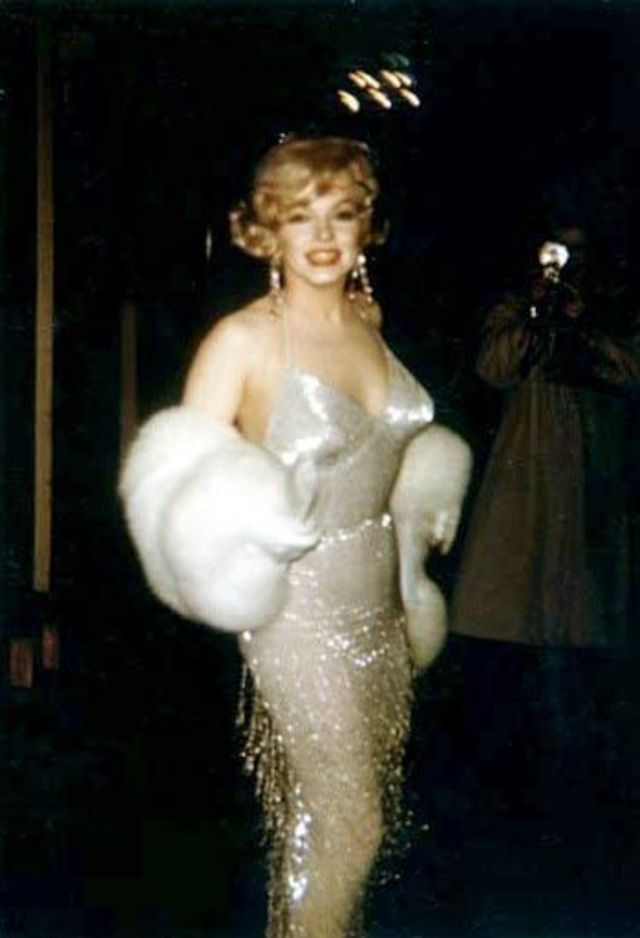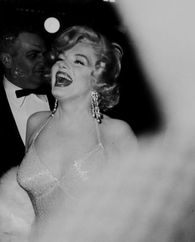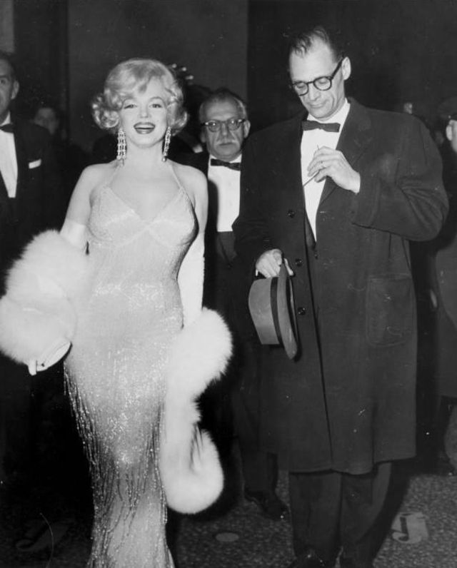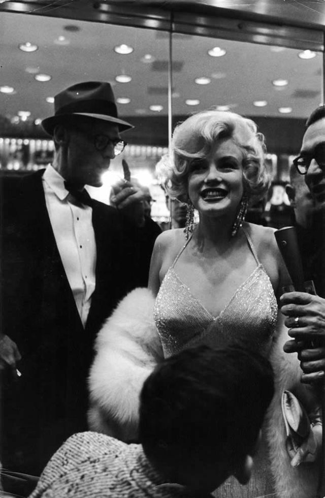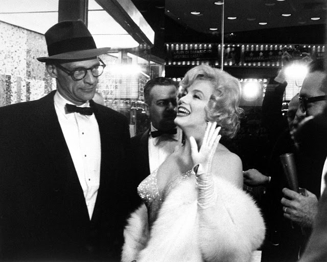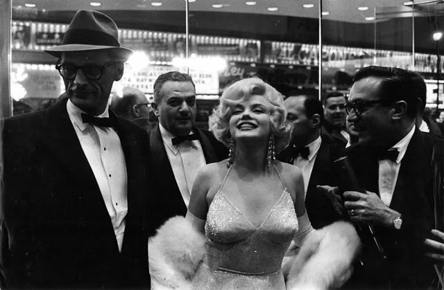 Some Like It Hot made its debut around the world in March 1959. Premiere’s were held in Chicago (which Marilyn attended) and Memphis on 17th March and then in Washington on the 21st March. But it was the New York premiere at the Lowe’s Capital Theatre on 29th March 1959 that fans remember most for the photographs and video footage of Marilyn arriving at the theatre arm in arm with her then husband Arthur Miller, greeting fans and photographers and still looking every inch the movie star in a gorgeous silver evening gown and fur wrap.
