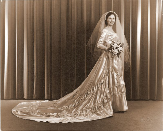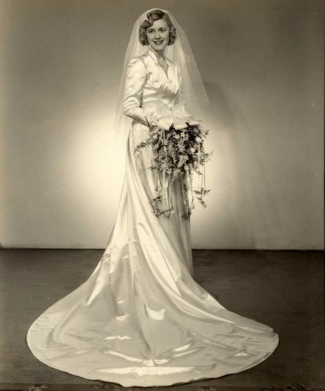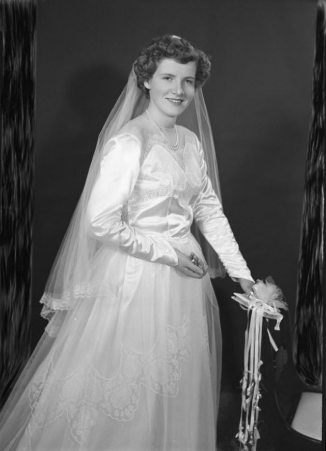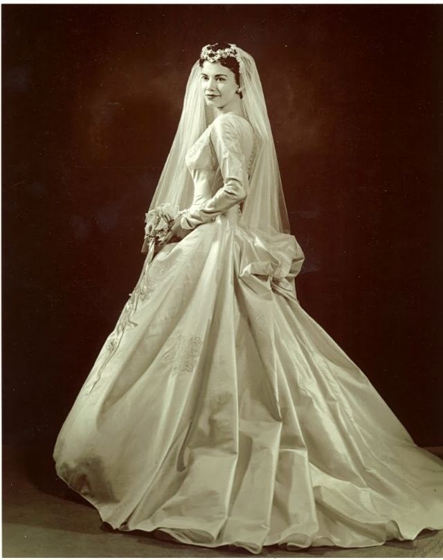 After the shortages of World War II, women were ready for a little luxury. And brides didn’t want to skimp on the lace or fabric.