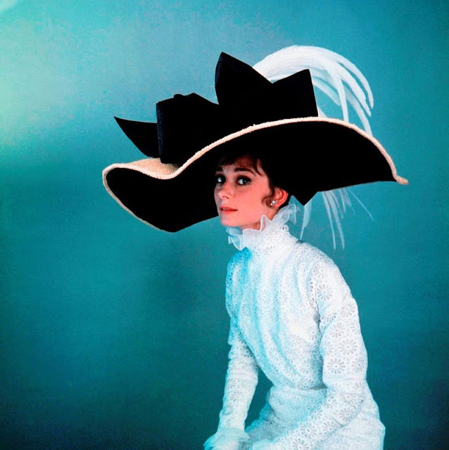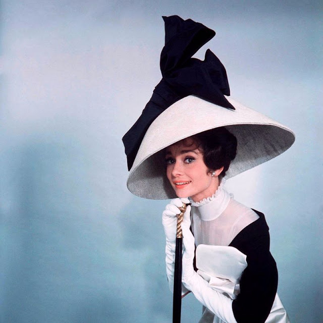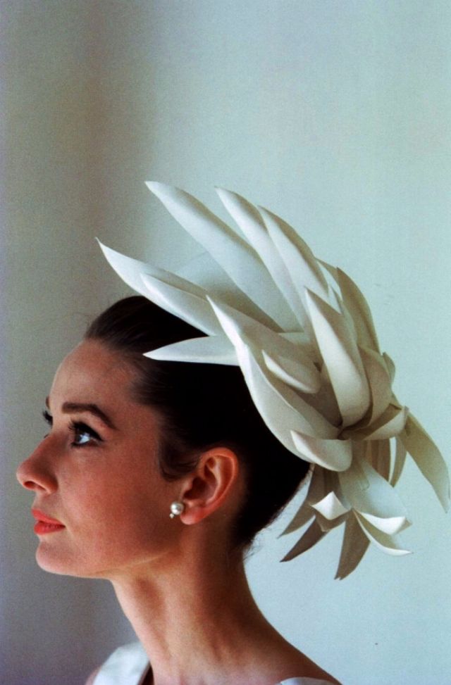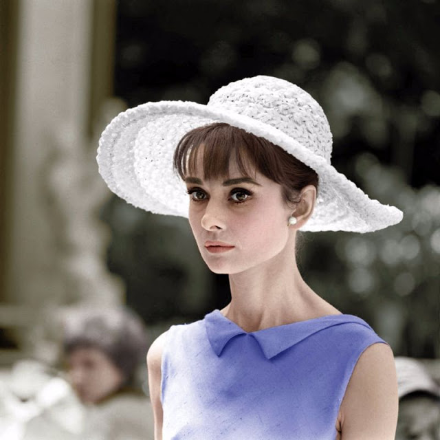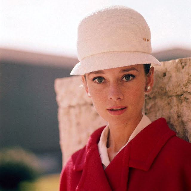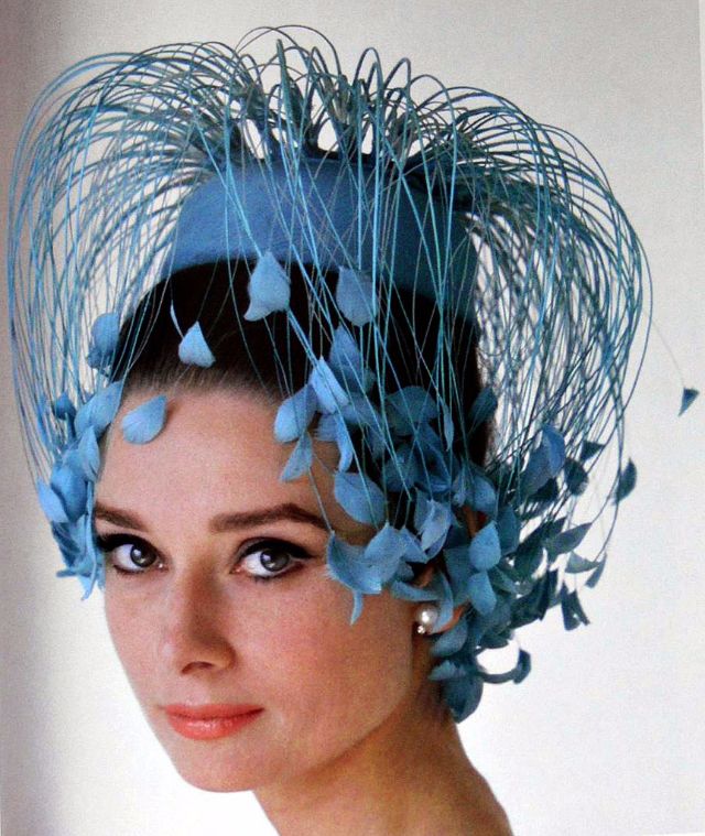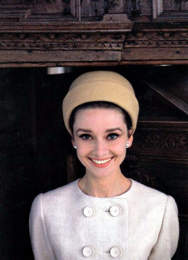 A colorful photo collection that shows hat styles Hepburn often wore from between the 1950s and 1960s.