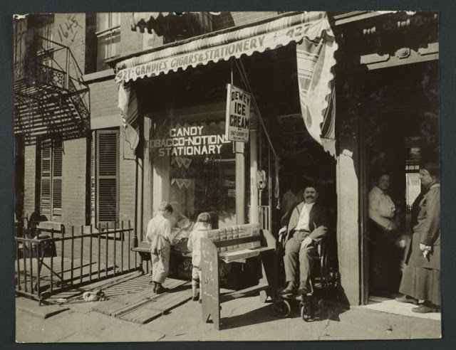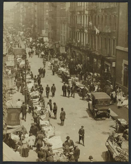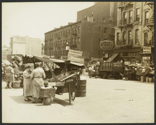 Children playing in garbage can, ca. 1918Candy store, ca. 1918People in front of J. Lacov Woolens, ca. 1900Fruit pushcartsPolice officer and crowd on Grand Street, ca. 1910The push-carts selling “Hot Frankfurters 3 cents and 2 for 5 cents” are parked on Broad Street, ca. 1905Maiden Lane, ca. 1905Street cleaning, ca. 1910sThree children with carriageBoy sitting on stoopBoy leaning against windowBoys and storefront windowsChild in hat and coatLooking north on Orchard Street, ca. 1909Two children near grateBoy with box near empty pushcartsBoy in hatGirl near storefront windowBoy in front of bread shopLooking North on Elizabeth Street. The crosstown street is Prince (see sign on corner building at right.) Note the street car track on Prince. Street cars crossed town West on Prince and returned East on Spring. Buses now travel the same route.Street with carriage, cat, carStreet with cars, ca. 1918Looking north on Mulberry Street from Canal. The building housing the Villa Rosa Cafe (first on left) is one of the few in the photo no longer in existence. It is now part of the site of the Rectory of the Church of the Most Precious Blood. The cornerstone of the Church (113 Baxter Street, with the property running through to Mulberry) has the date 1901, but the Mulberry Street rectory is of more recent construction.Looking north on Mulberry Street between Canal and Hester. The number on the store window at right is 126 Mulberry Street.The building has been modernized in recent years and is Vitale’s Florist Shop, F. Vitale, proprietor.High angle view of streetLooking east on East Houston. The street on the right, where the street lamp is, is Orchard, 1939.Looking north on Orchard St from DelanceyStamped Weissner Studio Corner of Elizabeth and Prince Streets, looking north on Elizabeth. The lights strung overhead along Elizabeth are in celebration of a feast day, probably that of St. Anthony of Padua which is celebrated the week of June 13th, ca. 1937.Looking north on Orchard Street between Stanton and Rivington. The light colored building on the left with the decorative balconies is 159-161 Orchard.East Houston and Orchard Street, 1939Surf Avenue in front of Sea BreezePushcart in front of meat marketMan and girl in front of shopLittle girl on sidewalk near elevated subwayPushcart Boulevard Lower East Side, 1932Typical old law tenements, 1907Open door next to storefronts