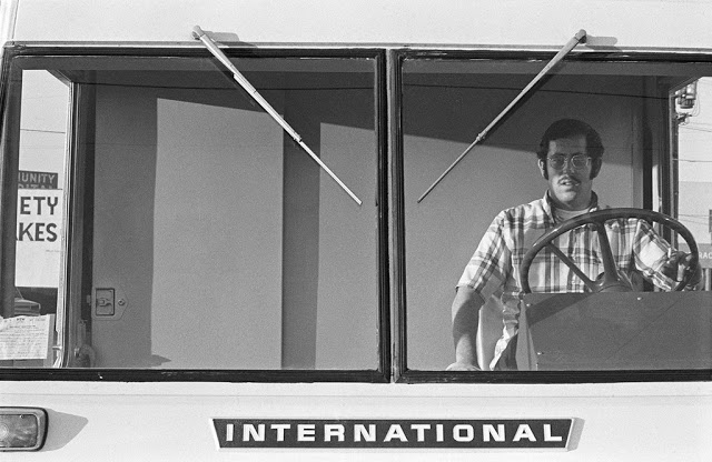 Mike Mandel grew up in the San Fernando Valley, and as an kid in the 1950s could walk just about everywhere he needed to go: to school, or later down the street to the open field to collect rocks or catch lizards. All of his friends lived on his block, so he didn’t think too much about the time he spent in a car. But by the time he reached twenty in 1970, he realized how large a role the car would play in his life, and so began to photograph the inhabitants of 1970s California in their cars.