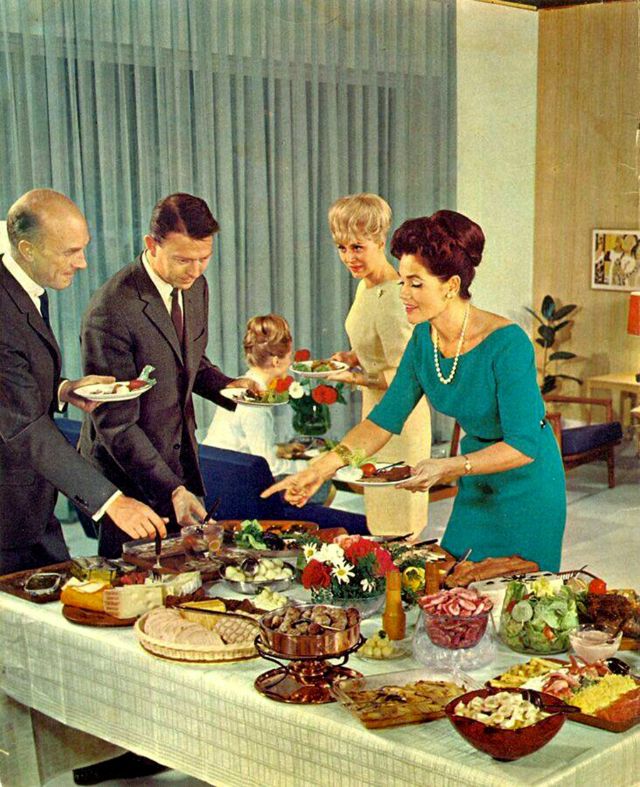 Let’s have a look at the 1950s-1960s buffet. So, grab a plate and get in line – and enjoy!